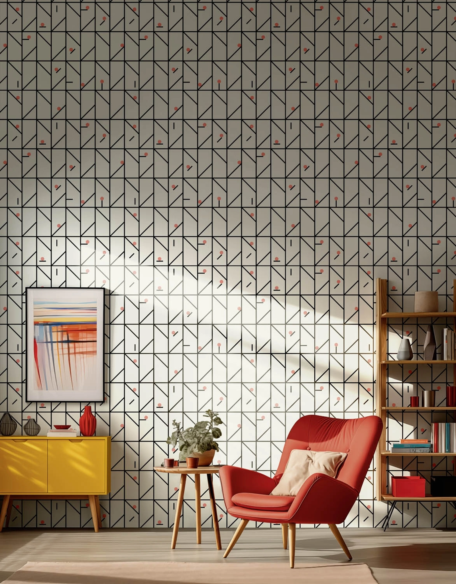 Vuoi completare un'atmosfera moderna? Scopri la Carta da parati vinilica di Spaghetti Wall: il modello Balance Lines ti attende!