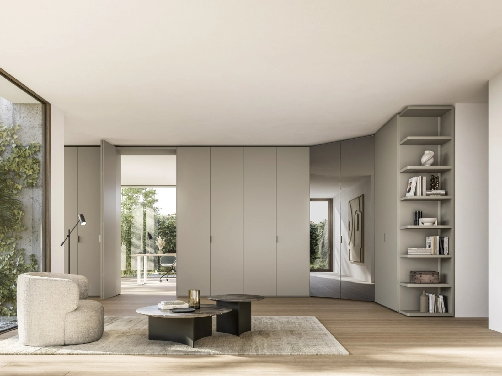 Cerchi un'armadiatura in laccato opaco? Clicca e scopri armadiature ad angolo con ante battenti di Sangiacomo.
