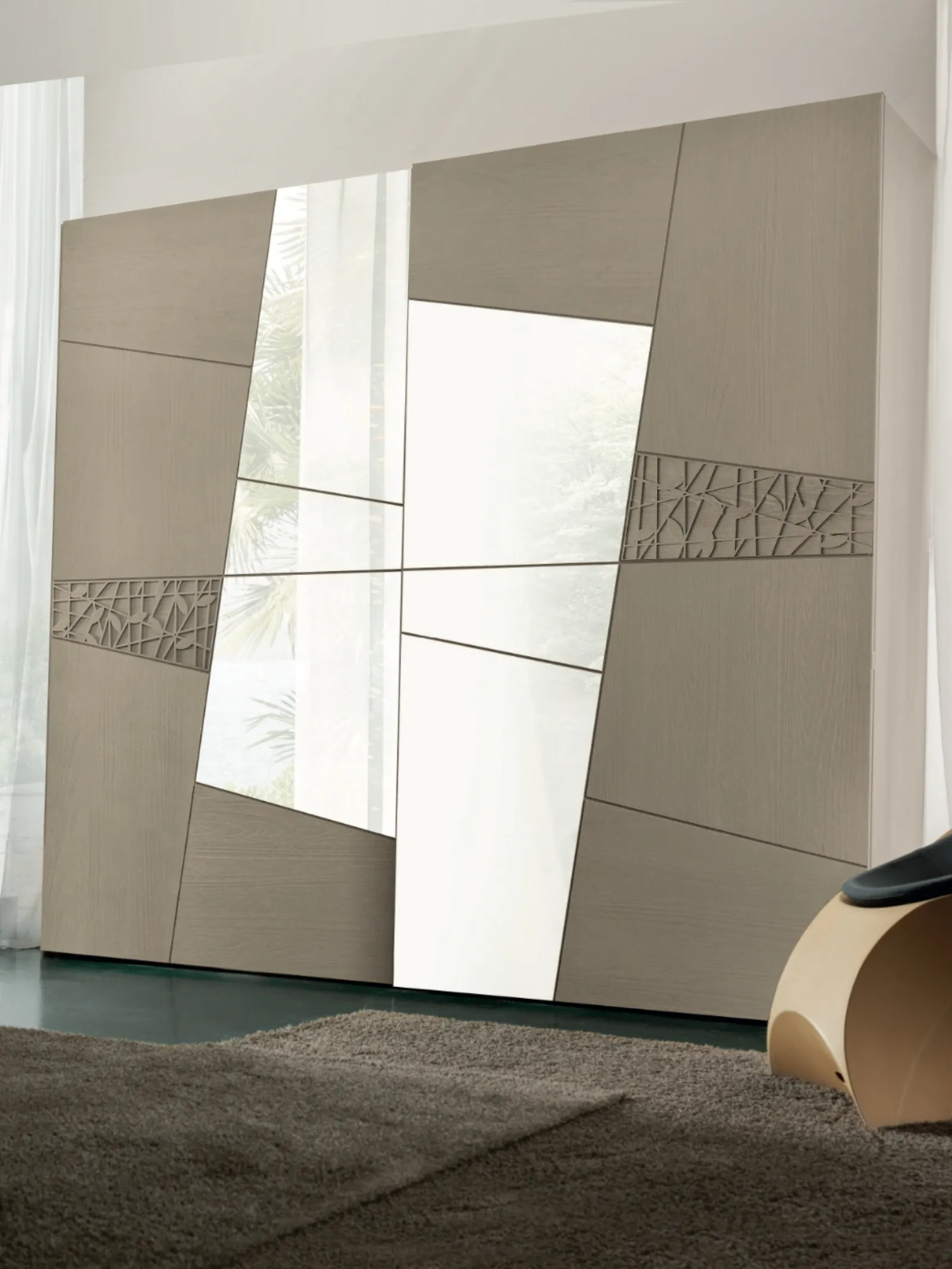 Gli Armadi e le cabine armadio con ante scorrevoli devono arredare la camera da letto assicurandoti una perfetta organizzazione degli spazi e un'esclusiva ricerca estetica. Armadio Decor a 2 ante scorrevoli con specchi di Modo 10: compila il form, contattaci e dai vita alla stanza del relax come l'avevi sognata. La camera da letto è dedicata al riposo, deve quindi risultare arredata con gusto e completa di mobili e complementi capaci di creare un'ambientazione sempre rilassante. Per ultimare alla perfezione il progetto d'arredo, prediligi le nostre proposte di Arredamento Casa delle migliori marche, letti, armadi e comodini diversi per classe, dimensione e finitura. Contattaci per informazioni e preventivi e potrai ultimare la camera da letto che hai sempre desiderato grazie ad una diversificata varietà di contenitori moderni come quest'armadiatura in legno nell'immagine.
