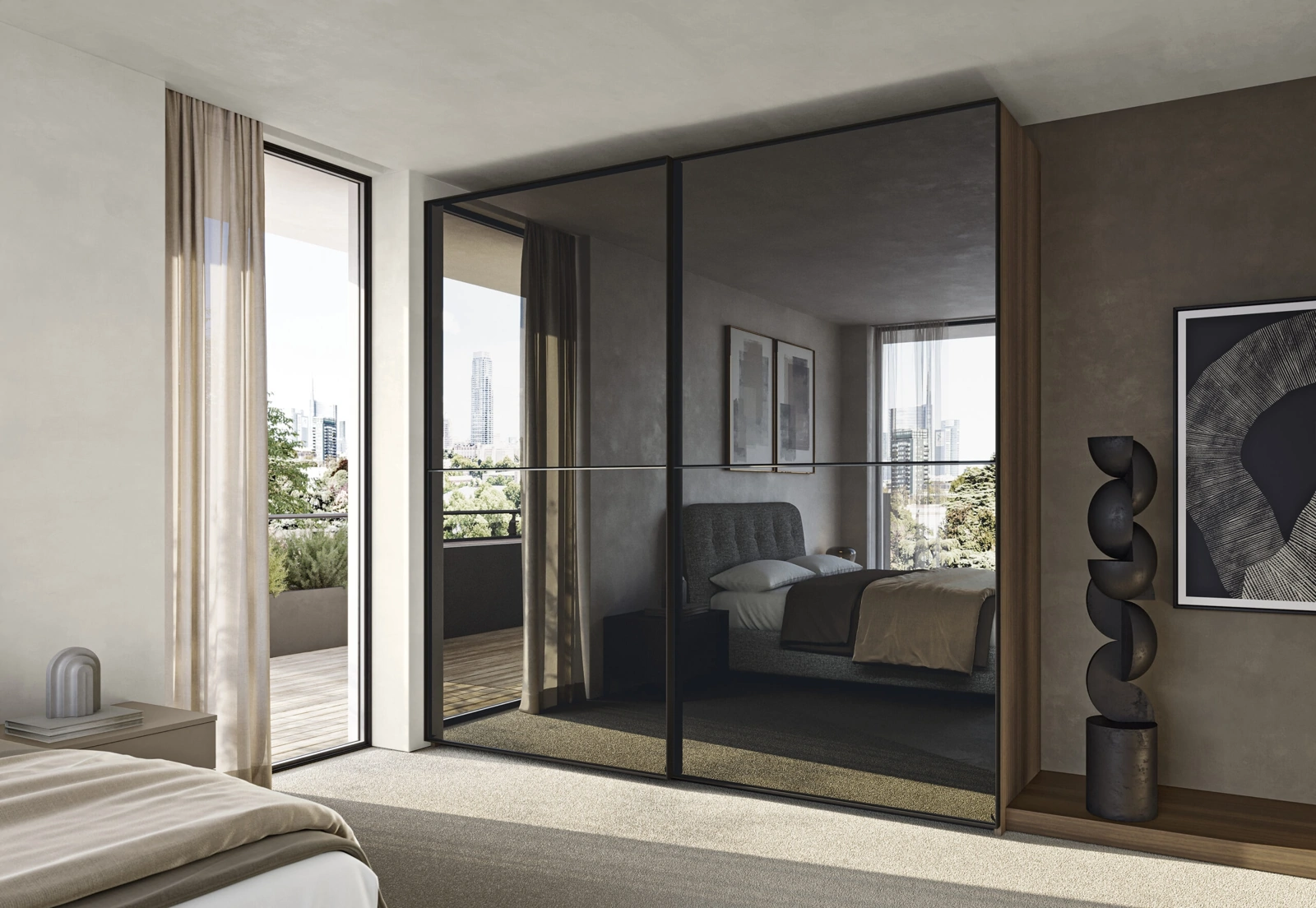 Per ammobiliare al meglio una stanza bella e funzionale, scegli le più belle soluzioni delle migliori marche, letti, armadi e comò di grande design. Gli Armadi e Cabine a muro con ante scorrevoli sono componenti immancabili nella camera da letto, per renderla ben arredata, funzionale e completa di tutto. Contattaci e scopri di più sulla nostra serie di Arredamento Casa: avrai la possibilità di completare la zona del riposo utilizzando una ampia varietà di mobili contenitori moderni, come l'armadio in vetro nell'immagine.