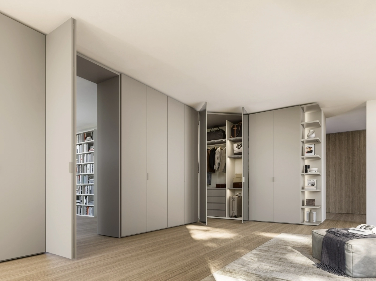 Eccoti l'armadio Terminale Angolare Anta Liscia in laccato opaco di Sangiacomo! Un ricco catalogo di armadi ad angolo con ante battenti.