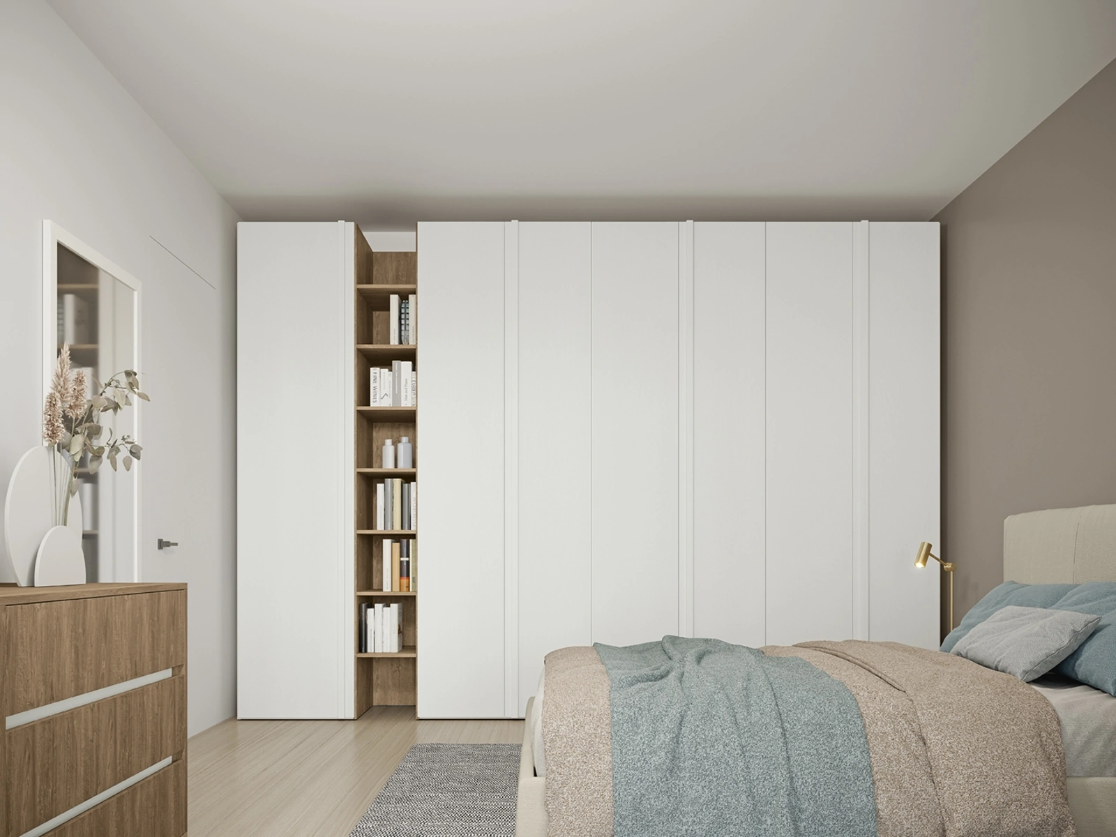 Per ammobiliare perfettamente una stanza bella e funzionale, scegli le più esclusive soluzioni dei migliori brand, letti, armadi e comò di elevata qualità. Contattaci e scopri di più sulla nostra serie di Arredamento Casa: sarai in grado di ultimare la camera da letto contando su una ampia gamma di mobili contenitori moderni, come l'armadio in melaminico in foto. Gli Armadi e Cabine a muro con ante battenti sono elementi imprescindibili in camera, per renderla arredata con gusto, pratica e completa di tutto.