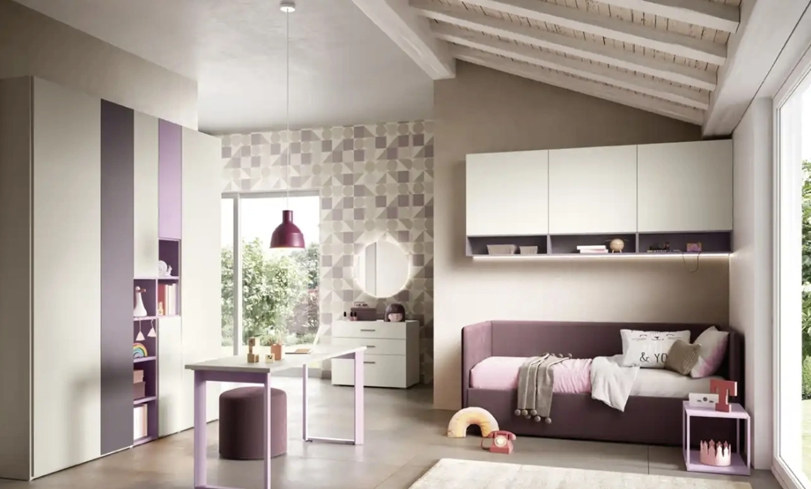 Con questa cameretta K106 Moretti Compact Camerette, tra le soluzioni componibili, potrai allestire stanze moderne per bambine.