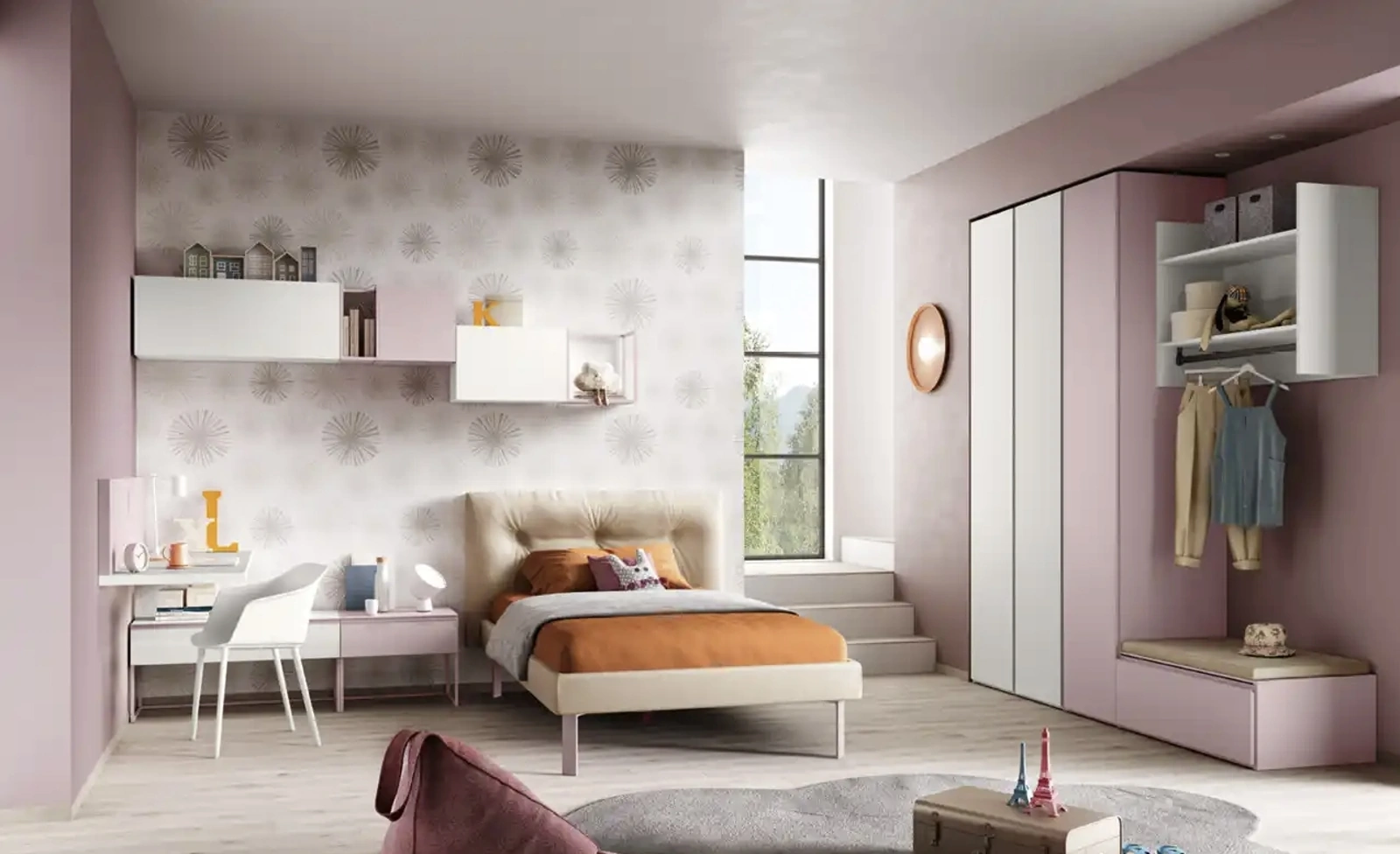 Camerette componibili per bambine: scopri il modello in laccato opaco K121 di Moretti Compact Camerette per stanzette moderne.