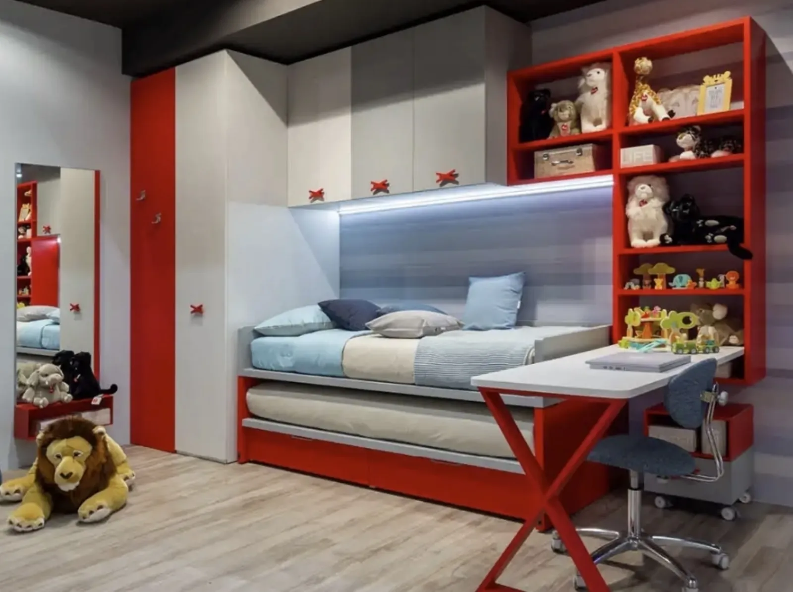 Camerette a ponte per bambini: scopri il modello in laccato opaco M2206 di Moretti Compact per stanzette moderne.