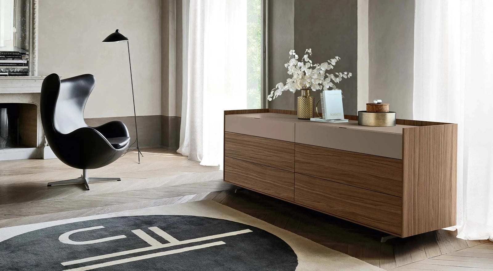 Vuoi arredare la camera da letto con Gruppi Letto e mobili con cassetti di Sangiacomo? Eccoti il modello Cabaret Comò in legno per spazi moderni.
