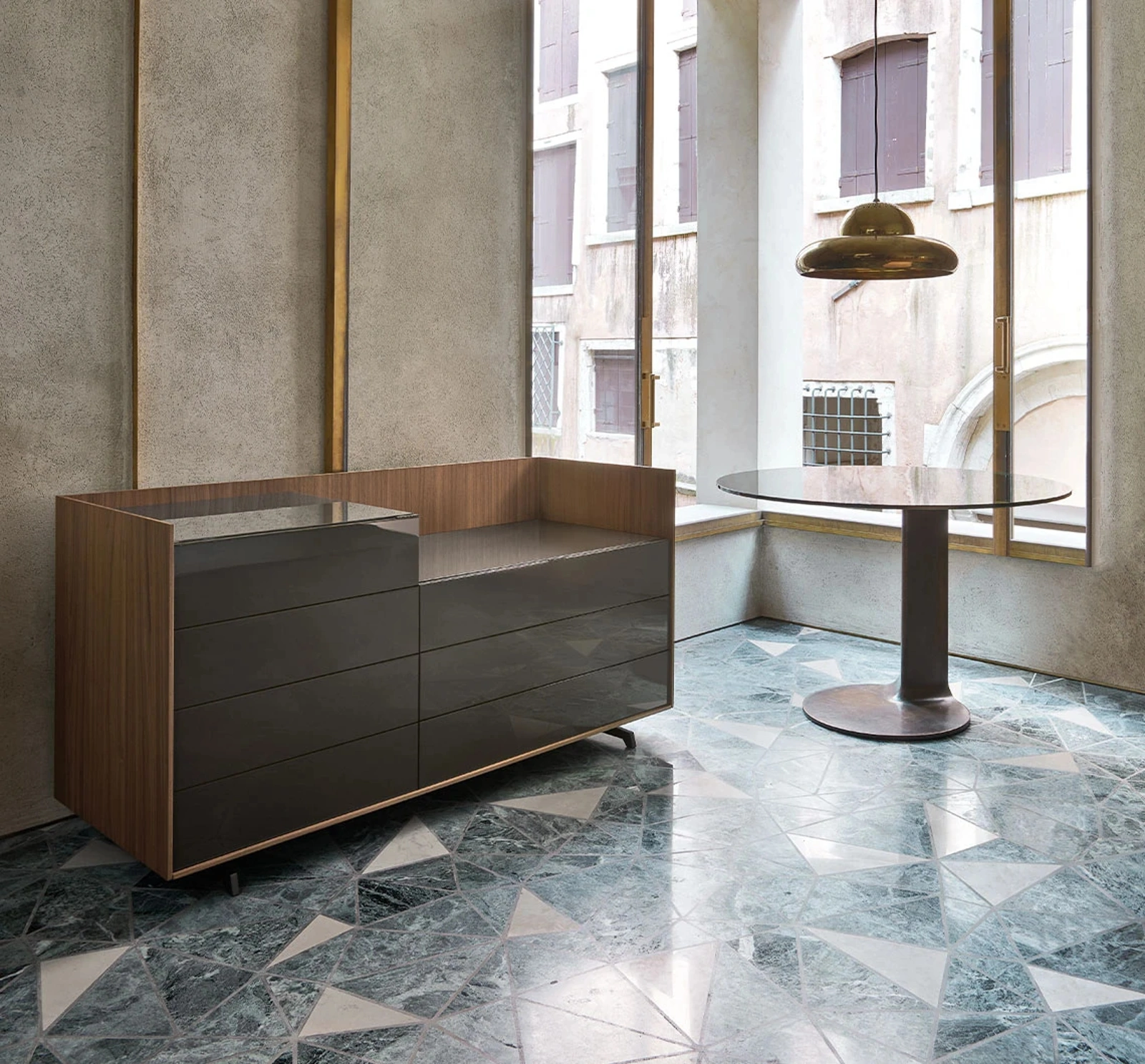Clicca e scopri di più sul comodino Cabaret Glass Comò: Gruppi Letto e mobili con cassetti di Sangiacomo sono ideali per spazi design.