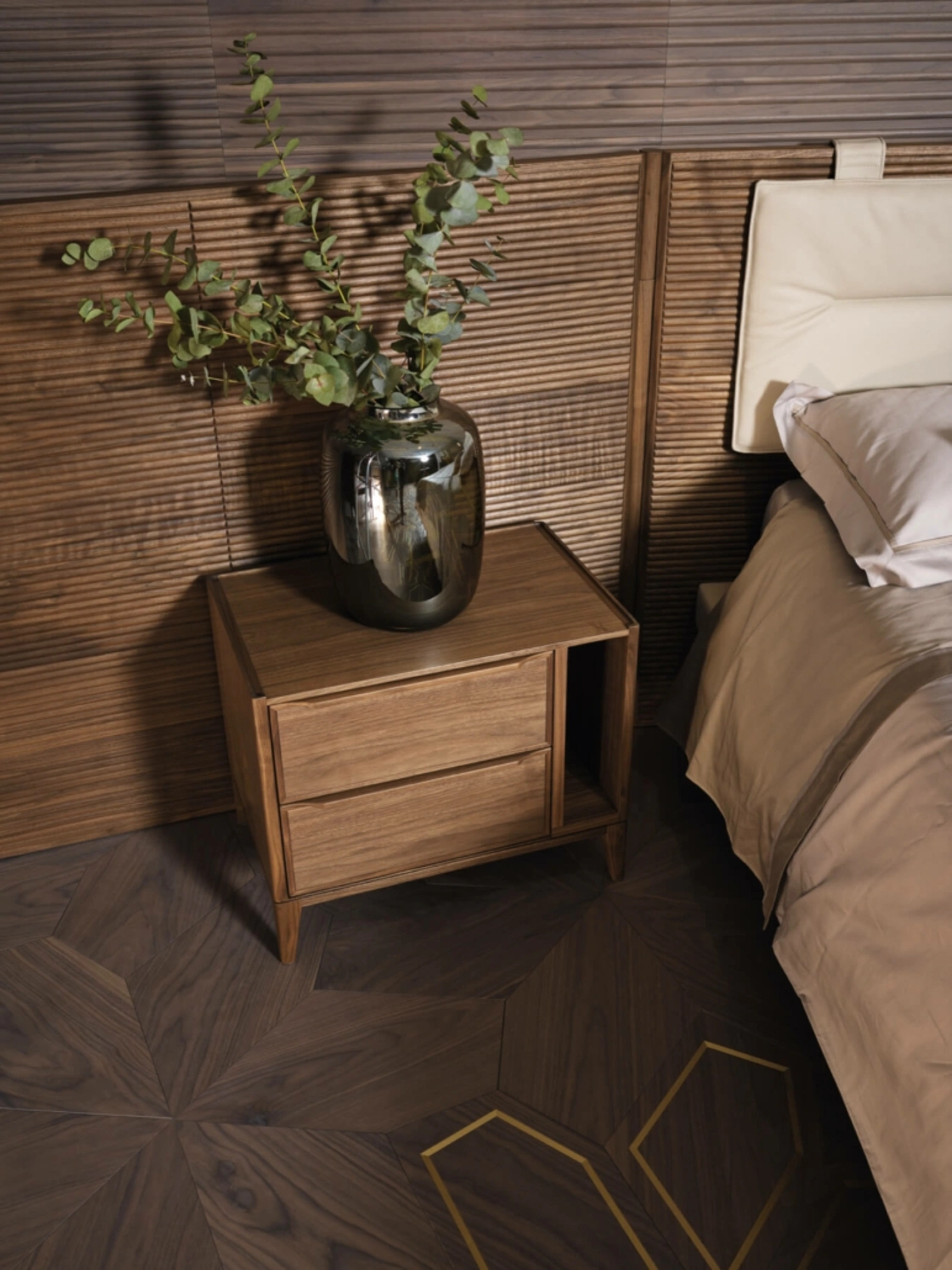 I Gruppi Letto sono alcuni dei mobili e complementi necessari in ogni zona del riposo, in quanto danno la possibilità di completare gli spazi ottimizzando ogni angolo. Grazie a questi accessori di arredo possiamo contenere oggetti di uso quotidiano o esporre accessori. Comodino Leonardo L185L di Arte Brotto: si tratta di un tipo di mobile contenitivo eclettico e capace di assicurarti funzionalità e un'ottima estetica in spazi moderni. Le proposte in legno della firma Arte Brotto, specialista nella produzione di armadi e comò, permettono di creare abbinamenti su misura o anche avere caratteristiche in voluto contrasto con i restanti arredi.