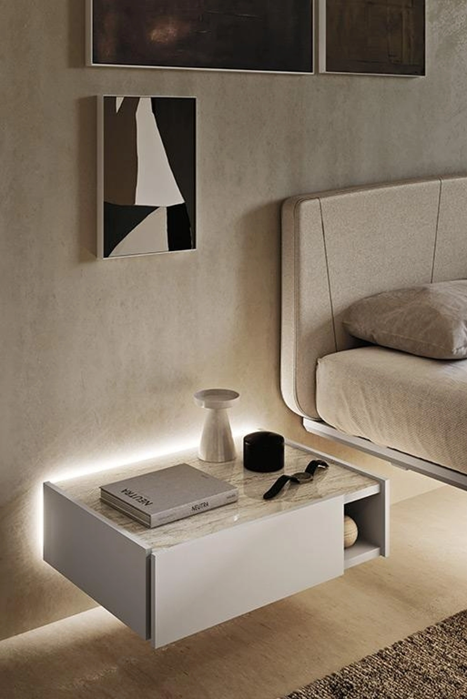 Clicca e ottieni informazioni sul comodino Smart sospeso: Gruppi Letto e cassettiere di Mobilgam sono ideali per spazi moderni.