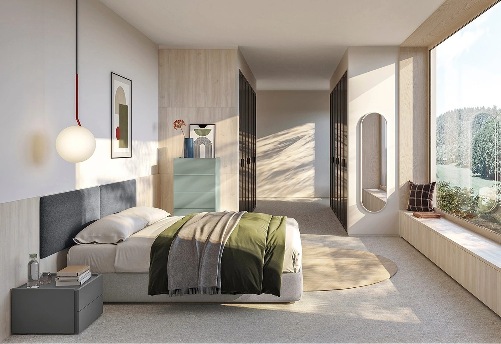 Vuoi progettare la camera da letto con Gruppi Letto e mobili con cassetti di Colombini Casa? Eccoti il modello Tower Gruppo Notte in melaminico per spazi moderni.