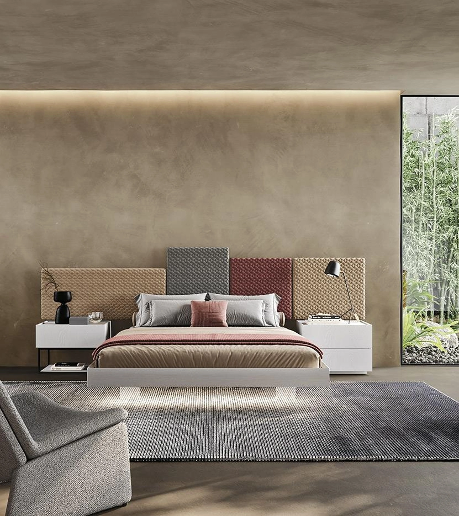 Contattaci e ottieni informazioni sulla nostra linea di Letti matrimoniali sommier: valorizza la tua zona notte con le nostre soluzioni. Il Letto Tetris con testiera boiserie di Mobilgam è uno tra i prodotti più inediti dell'azienda, garanzia di durata nel tempo, qualità delle finiture e uno stile unico. Questa è una soluzione di grande fascino, che rappresenta tutta l'eccellenza garantita dalla pluriennale professionalità del marchio nel campo. Per completare alla perfezione l'arredo della tua zona notte è di primaria importanza valutare gli abbinamenti del letto con armadi e comodini, elementi accessori e quant'altro: se desideri mobili moderni, il modello in foto fa al caso tuo.