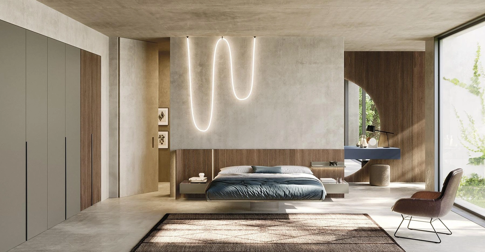 Il letto Sistema Sipario N11 in legno, tra i modelli con testiera matrimoniali design di Mobilgam, è pensato per assicurarti il riposo migliore.