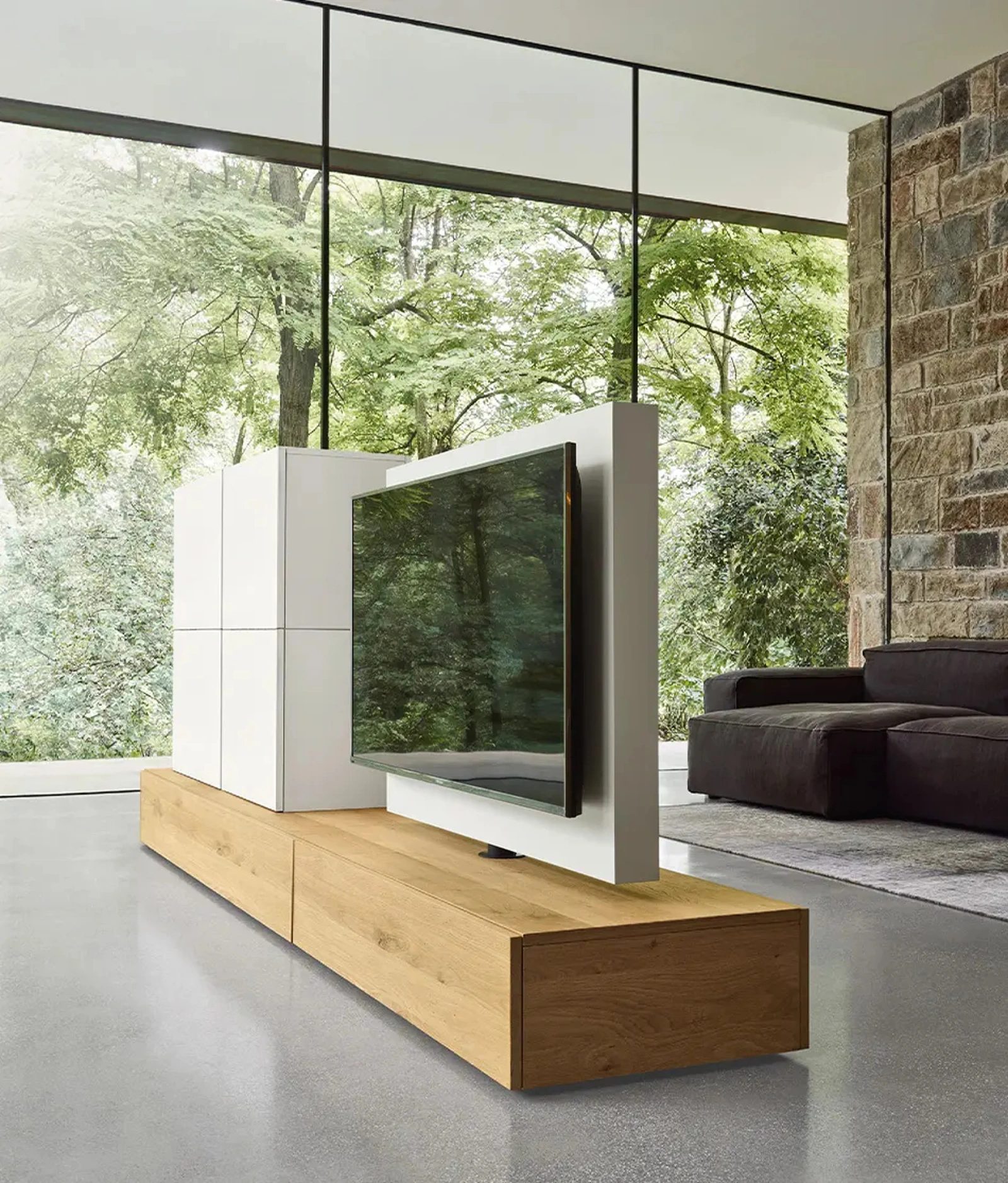 Mobile porta tv per la zona giorno Sangiacomo in legno: clicca e ottieni informazioni sul modello Tv Units Roto Lampo, ideale per spazi design.