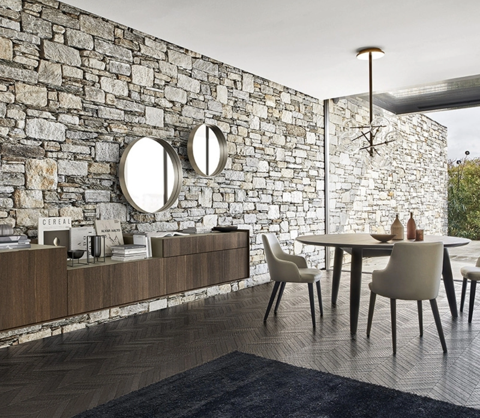 Clicca e scopri di più sul mobile soggiorno Cabaret One 01 Sangiacomo in legno: arreda un soggiorno pratico e operativo.