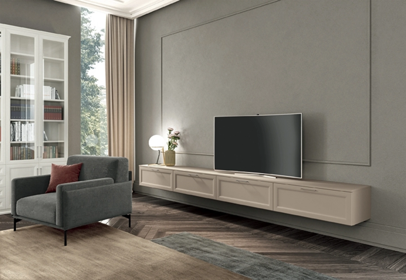 Vuoi arredare un soggiorno pratico e dinamico? Ti offriamo la parete attrezzata Arcadia AS006 Colombini Casa dalle linee decise classiche.