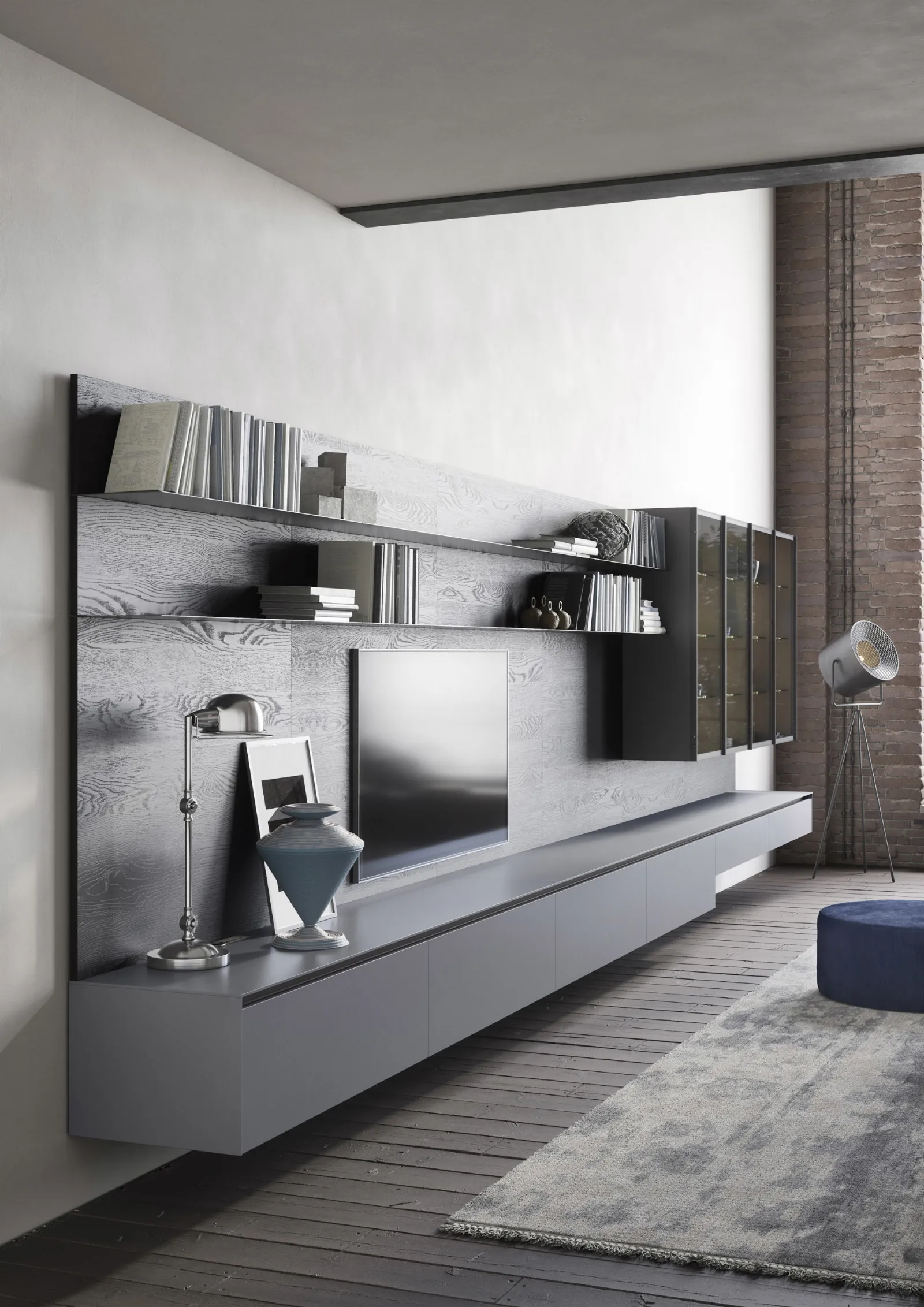 Se desideri ultimare un living dinamico e operativo dalle linee moderne, ti offriamo la parete attrezzata Box 18 02 Novamobili.