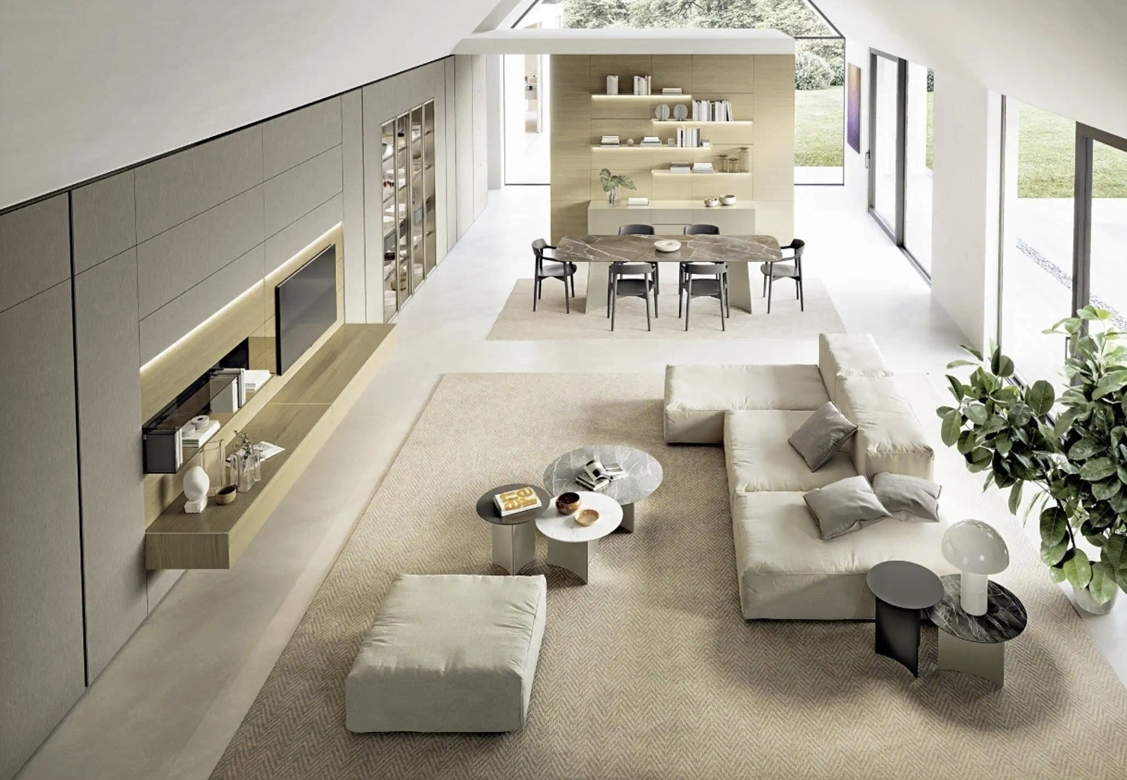 Se vuoi ultimare un living pratico e operativo dalle linee moderne, ti offriamo la parete attrezzata Domino Boiserie 02 Sangiacomo.