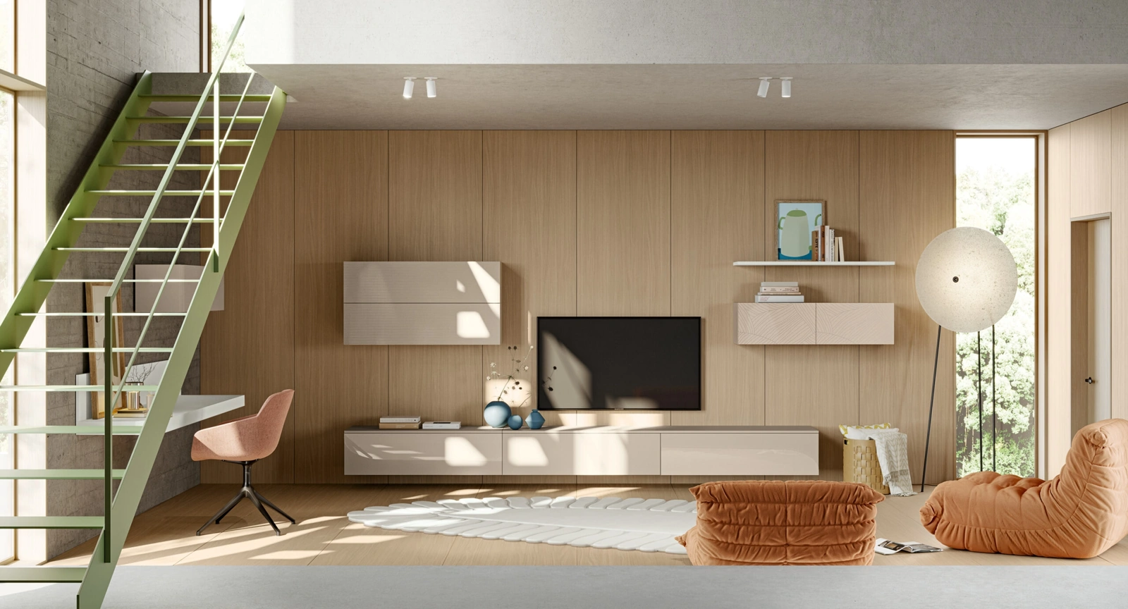 Se desideri ultimare un soggiorno dinamico e operativo dalle linee moderne, ti offriamo la parete attrezzata Eclettica EG002 Colombini Casa.