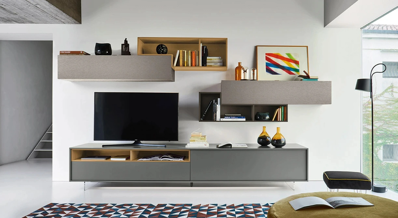 Se vuoi ultimare un soggiorno dinamico e operativo dalle linee moderne, ecco a te la parete attrezzata Lampo 042 Sangiacomo.