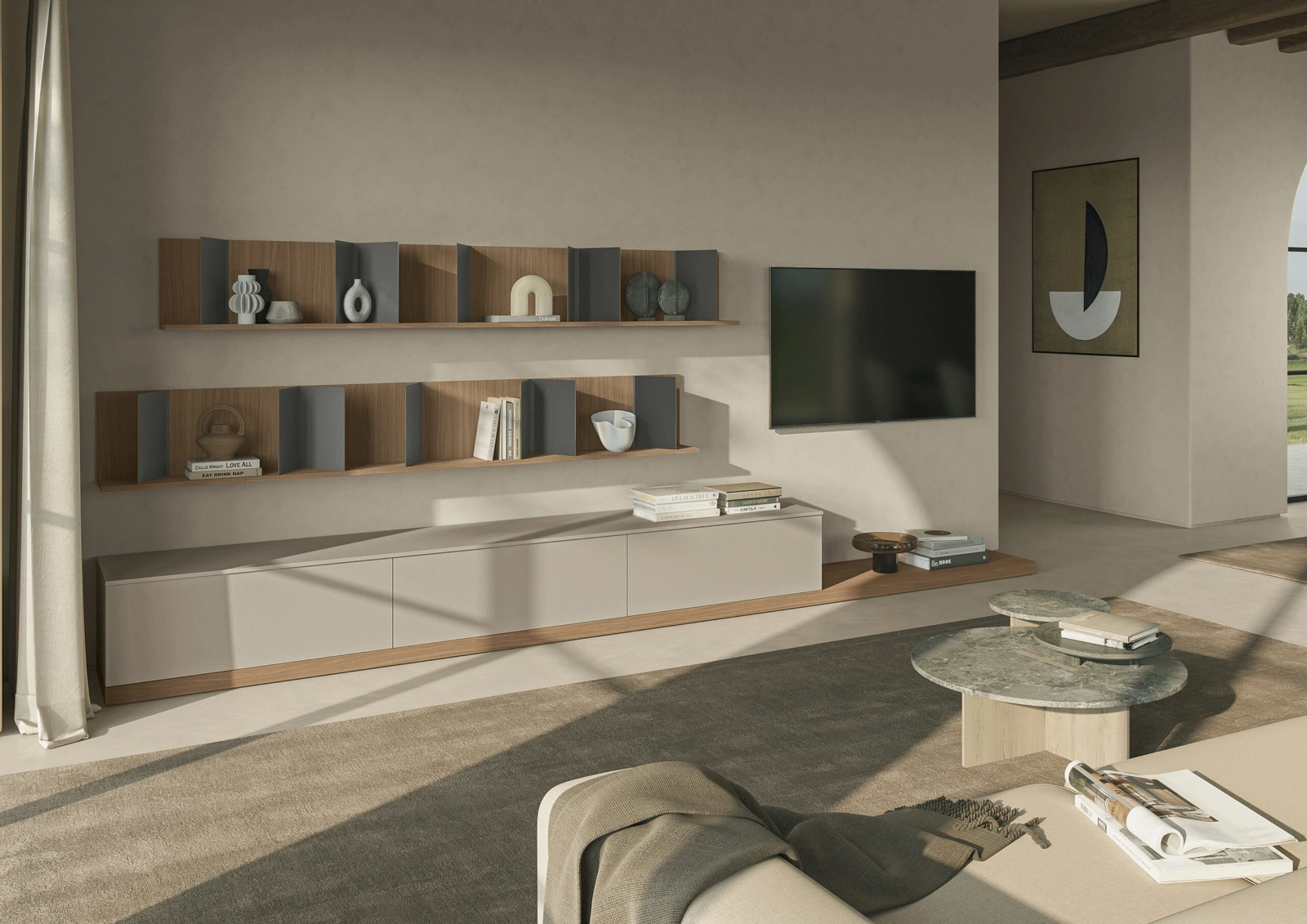 La Parete Attrezzata Night & Day L01NS di Colombini Casa nell'immagine possiede massima componibilità e varie possibilità di caratterizzazione: scopri la parete attrezzata qui visibile e contattaci per maggiori info e preventivi. A muro oppure freestanding per ottimizzare un open space, le più belle composizioni d’arredo sul mercato arredano il living ottimizzando lo spazio disponibile. Valorizza i tuoi interni con le Pareti Attrezzate moderne di Colombini Casa: nel nostro showroom troverai mobili e oggetti accessori di design, in materiali di prima scelta e delle migliori marche.