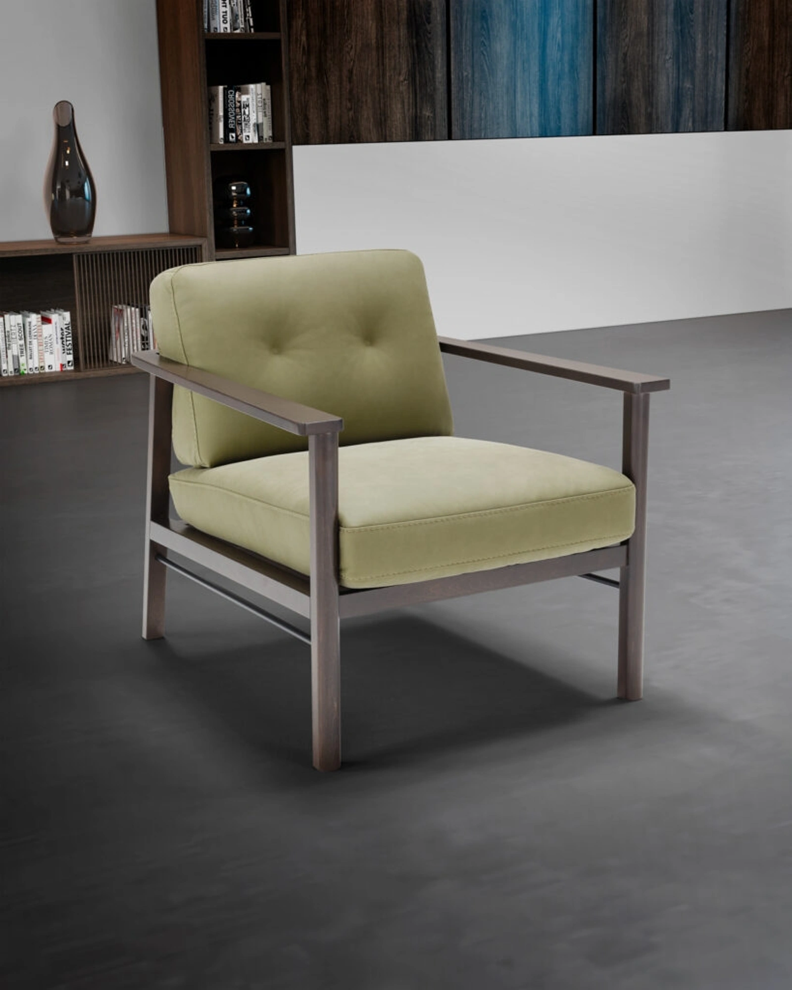 Se vuoi una poltroncina per stanze moderne, clicca e leggi di più sul modello Lauro in pelle del marchio Franco Ferri.