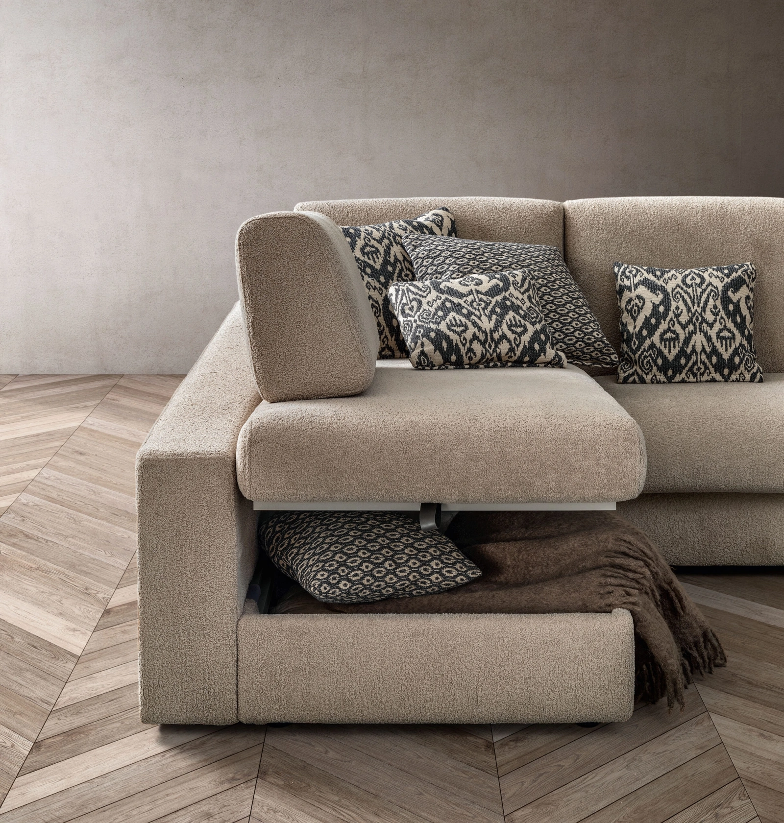 Salotti e divani con letto Samoa: ti presentiamo il modello Cliff in tessuto per valorizzare la zona giorno.