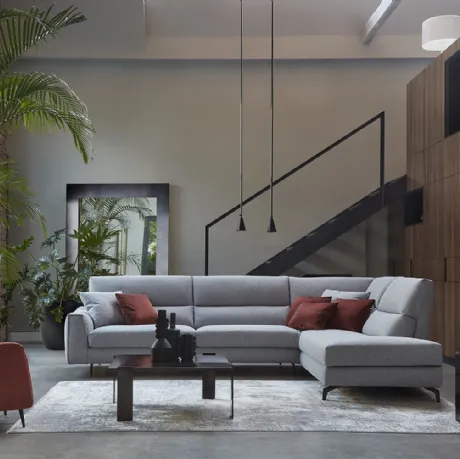 Salotti e divani con penisola Bontempi: ti presentiamo il modello Victor in tessuto per valorizzare la zona giorno.