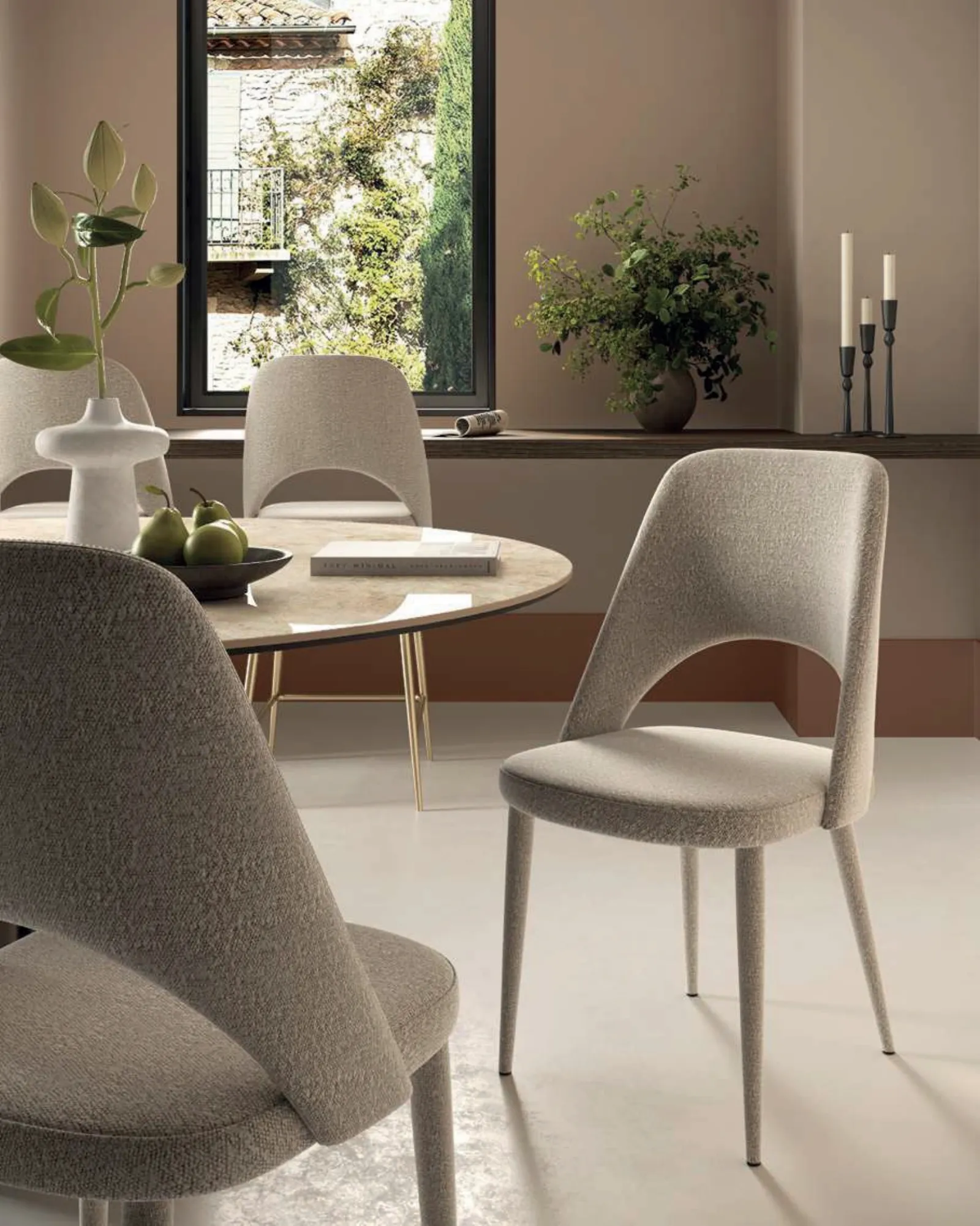 Con questa sedia Lella Di Lazzaro in tessuto, una delle nostre sedute fisse moderne, potrai arricchire i tuoi interni.