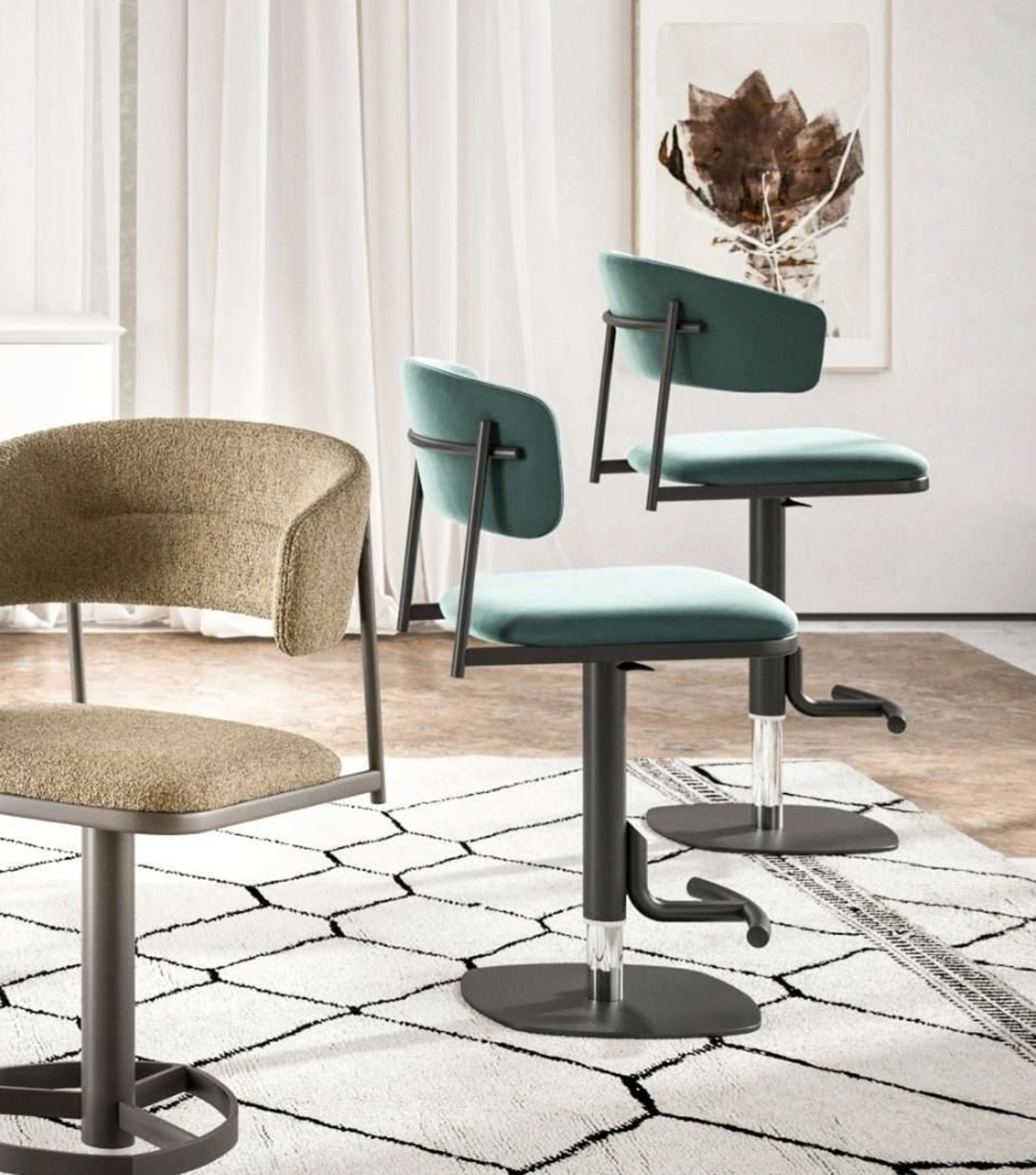 Le sedute moderne, sia in legno che imbottite, sono arredi complessi, caratterizzati da una scelta quasi infinita di tonalità, forme e pattern. Una sedia in tessuto come quella qui visibile arreda un living o una cucina di grande design, ultimando gli spazi valorizzandoli appieno. Contattaci e ottieni informazioni sul modello di Sgabelli in tessuto Adam e Alida di Ozzio presente in foto. Oltre a assolvere a una funzione essenziale, questi arredamenti sono in grado di enfatizzare un ambiente anche monocorde e privo di accessori. Tra le migliori marche disponibili nel nostro negozio di Arredamento Casa troverai le Sedie sgabelli da cucina più originali sul mercato.