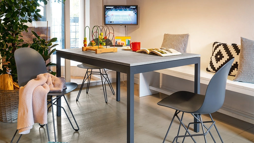 I Tavoli sono componenti d'arredo grazie ai quali è possibile impreziosire il living, la cucina o anche altri locali di casa, grazie a materiali di qualità e fantasiosi accostamenti cromatici. I modelli allungabili in melaminico come quello mostrato in foto si adattano ai più differenti spazi e ambienti abitativi, essendo veramente poliedrici e robusti. Compila il form e contattaci per scoprire l'Arredamento Casa dei migliori brand, tavoli e sedie a marchio Connubia. I Tavoli sono pezzi di arredo irrinunciabili in ogni abitazione: completa il tuo progetto d'arredo e dai vita alla casa che hai sempre desiderato.