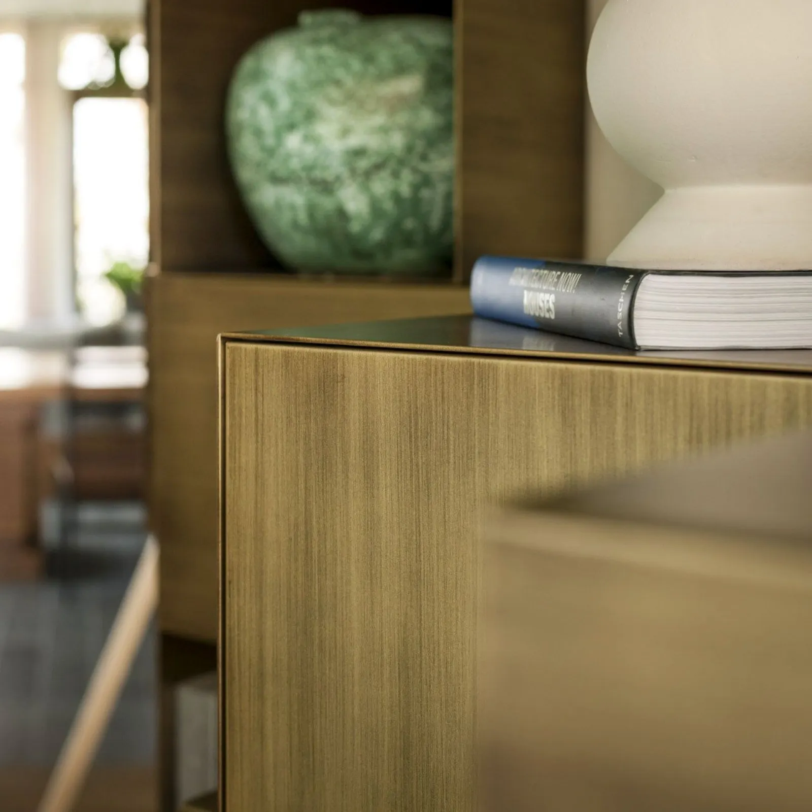 Cellula è un contenitore in metallo a parete. Una misura unica e due finiture: brunito e patinato bronzo.