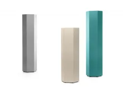 Exagon è un contenitore autoportante a base esagonale in mdf laccato in tutti i colori come da campionario.
