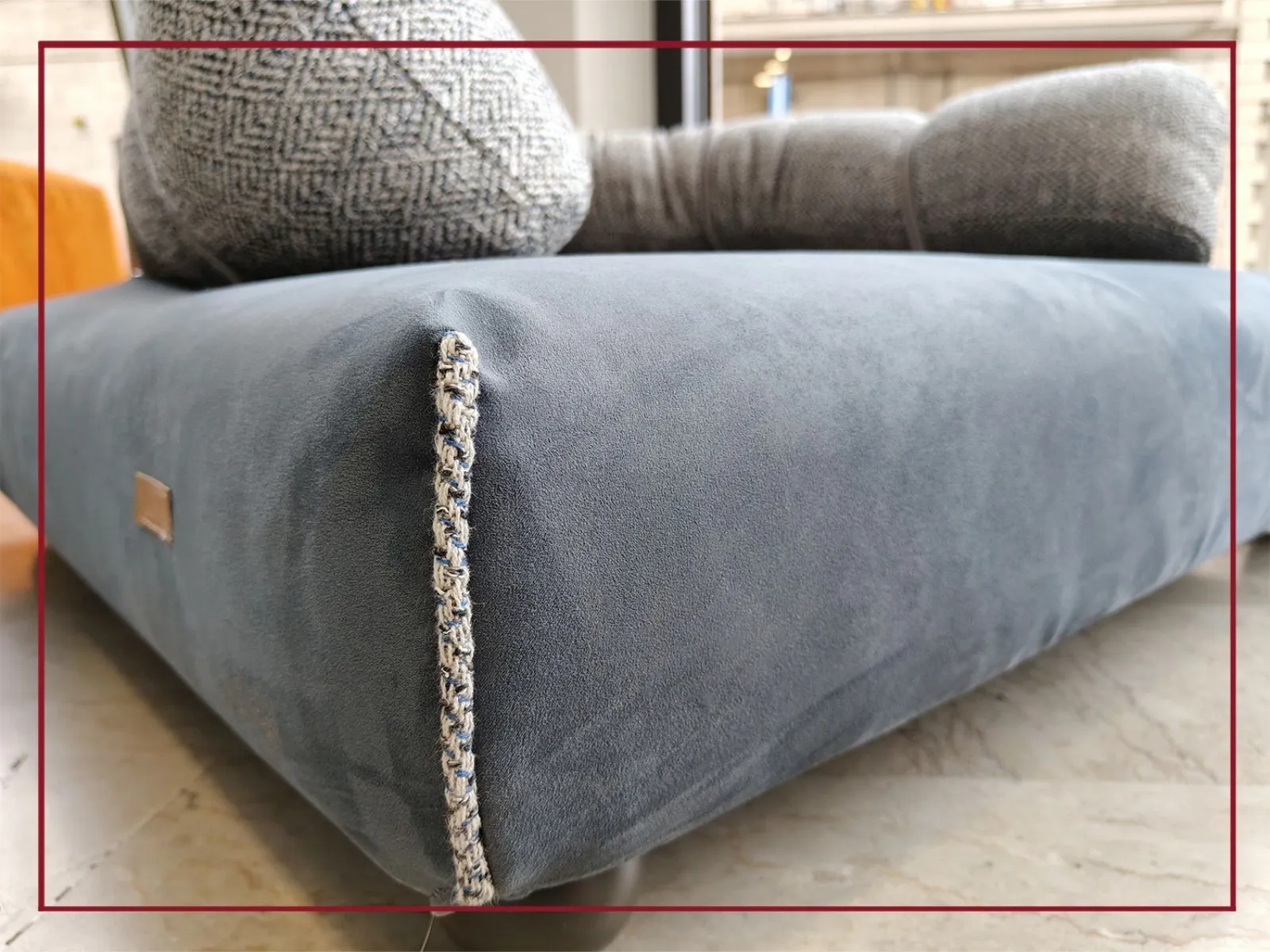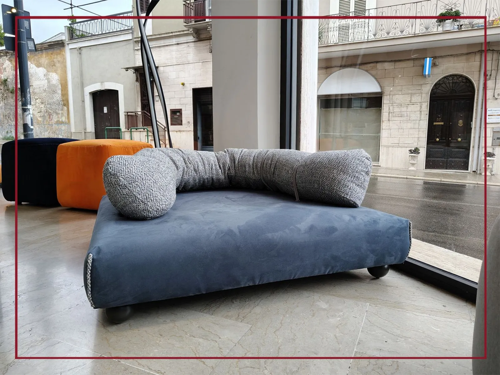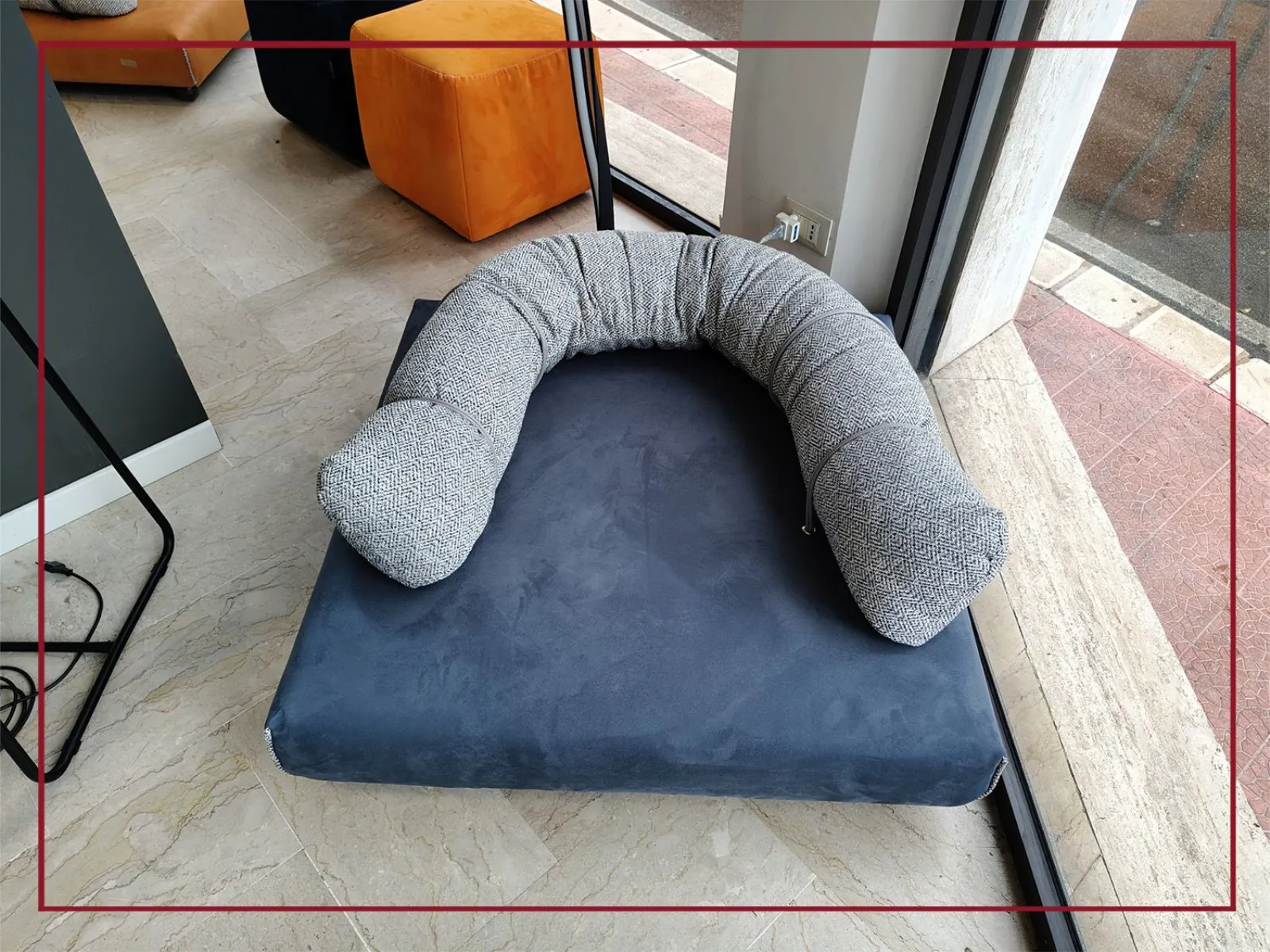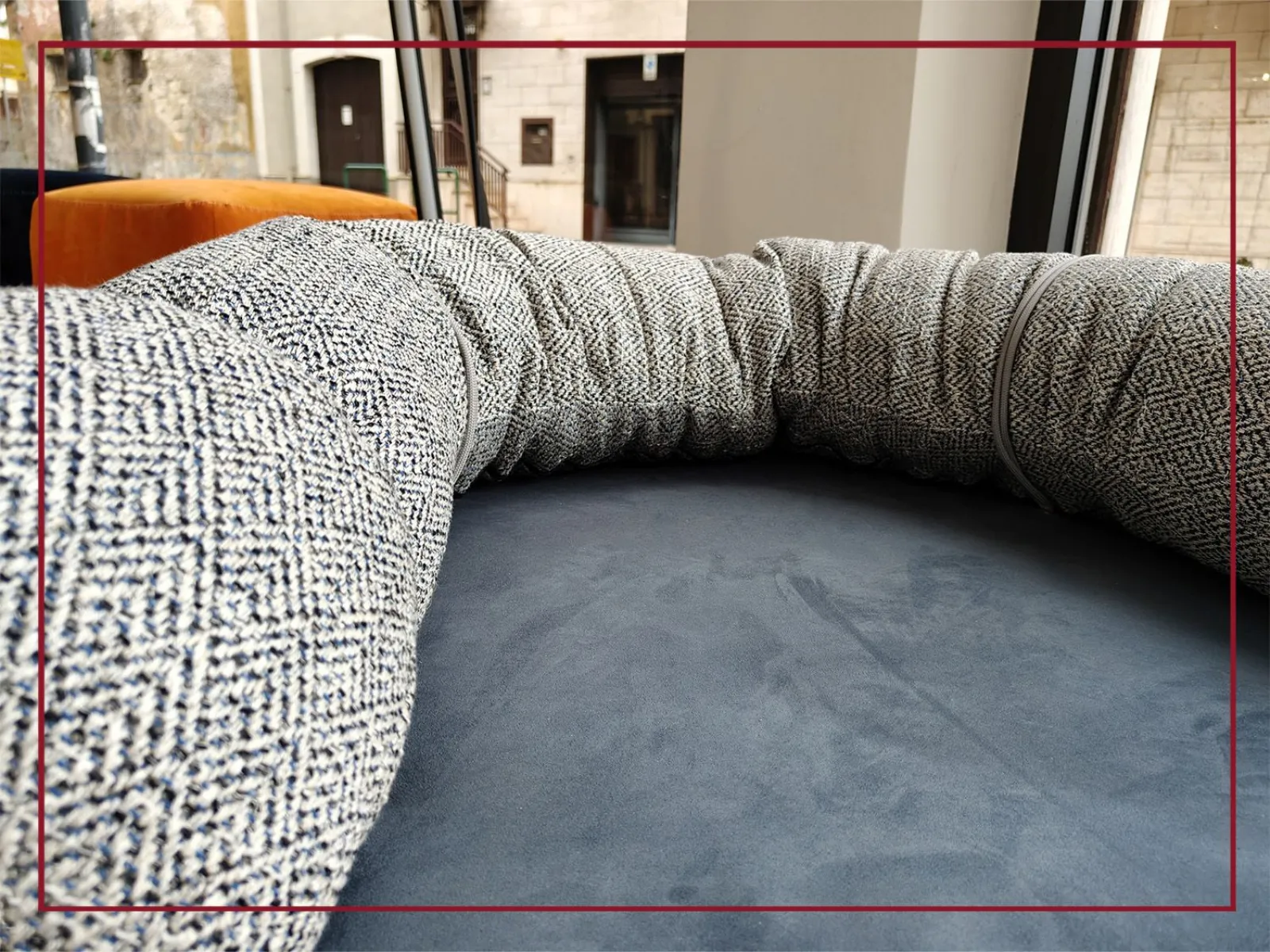 Realizzata artigianalmente con sfridi di pelle e tessuto derivanti dalla produzione dei divani Egoitaliano, questa cuccia è il simbolo perfetto di design eco-friendly e amore per gli animali.