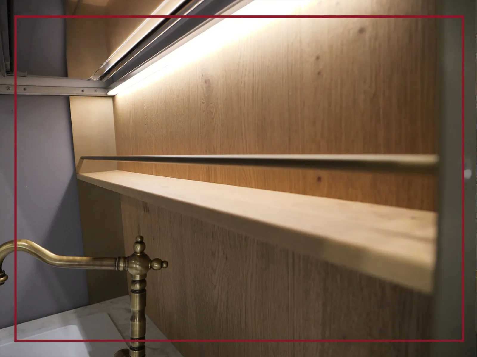 L’anta a telaio con cornice sottile di Meg definisce una cucina moderna e contemporanea che fa sempre dell’essere elegante la sua caratteristica. Il rilievo minimo della cornice, in laminato PET o laccato, si presta a molte interpretazioni: dinamico e attuale quando è abbinato a maniglie in finitura titanio, più classico e rassicurante se incorniciato dalla modanatura sopra pensile.