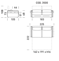 MISURE DEEP 2 POSTI - L165xP105xH73cm - MAT L102xP191x16cm