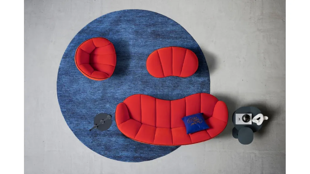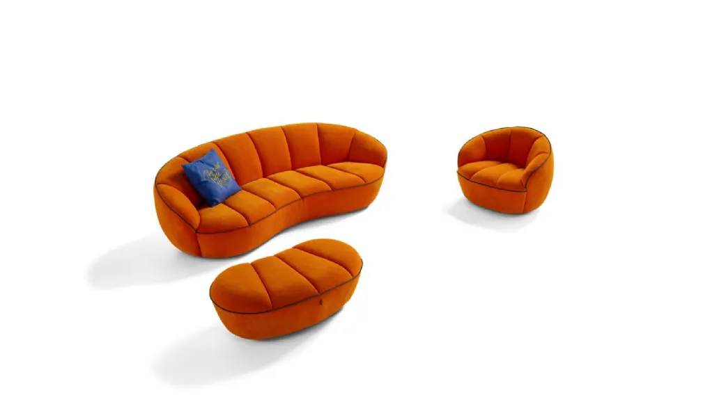 La sua estetica distintiva unisce alle forme arrotondate le impunture verticali sia sulla seduta che sullo schienale che conferiscono una nota di movimento e dinamismo, rendendo Shai un divano curvo in grado di valorizzare qualsiasi living.