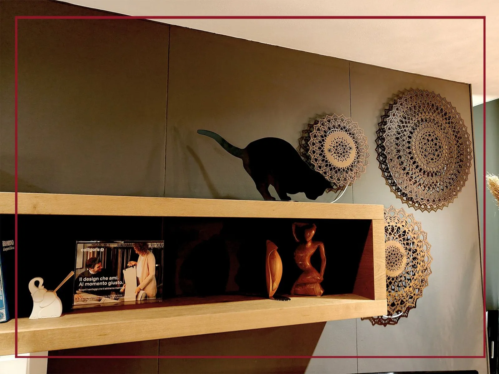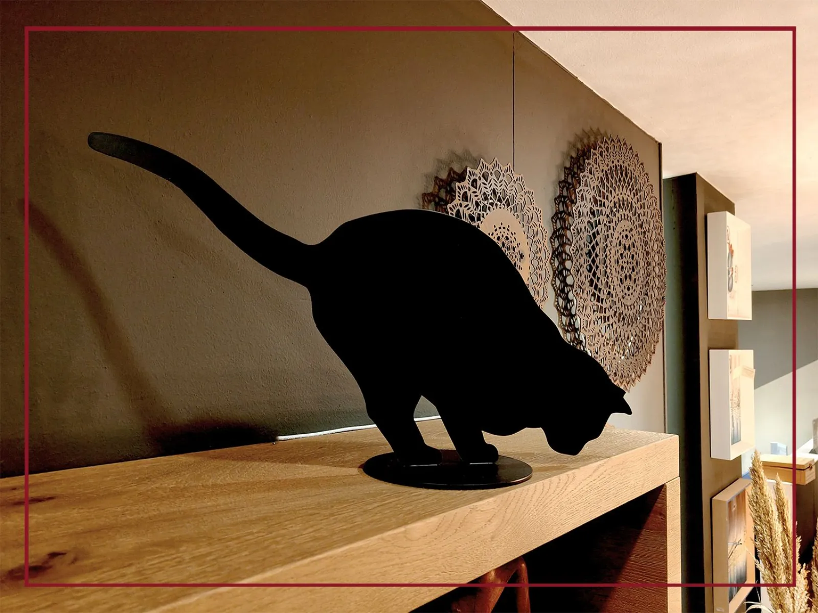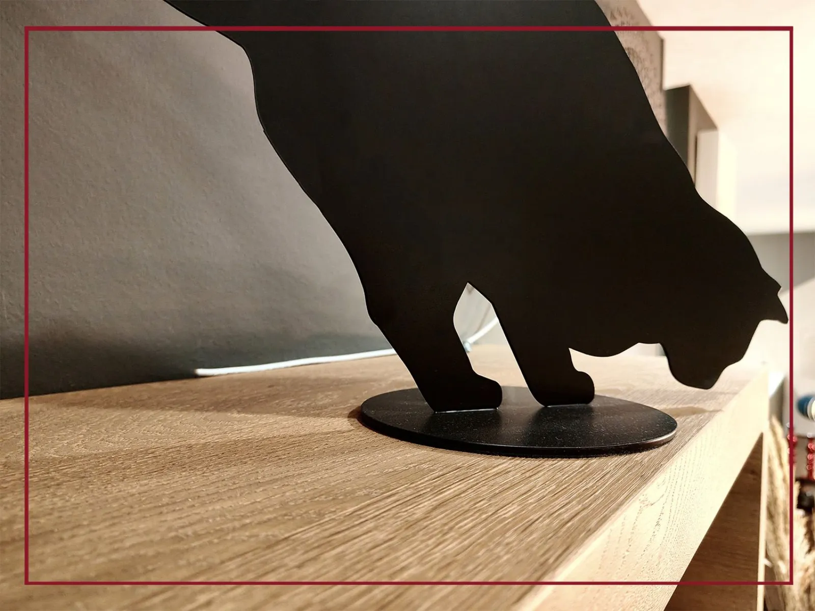 Disegnati da Angelo Barcella, questi complementi d’arredo in acciaio evocano l’ombra di felini curiosi, sornioni o assorti nella loro silenziosa contemplazione.
