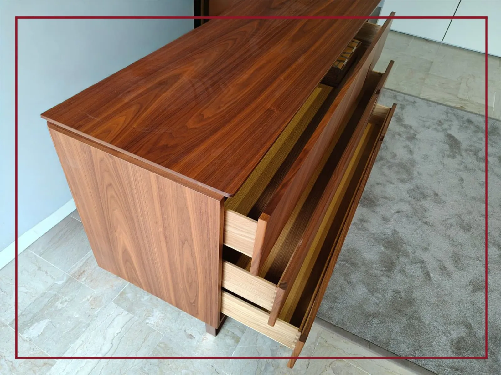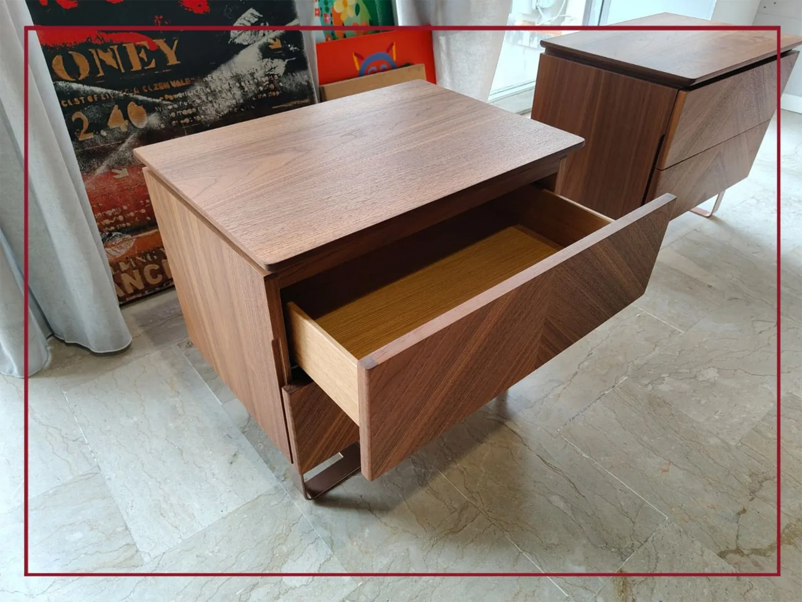 Realizzato in legno massello di noce, proveniente da foreste europee gestite in modo responsabile, questo insieme di arredi trasmette calore, solidità e raffinatezza.