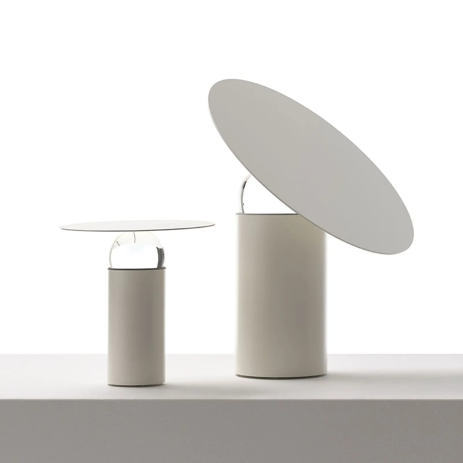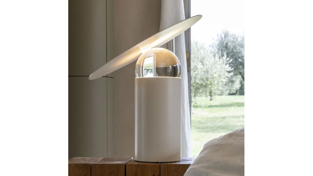 ERA è una lampada da tavolo dimmerabile in metallo, interattiva con un'elegante sfera di vetro al centro, consente il movimento multidimensionale senza soluzione di continuità del paralume, offrendo opzioni di illuminazione sia statiche che dinamiche.