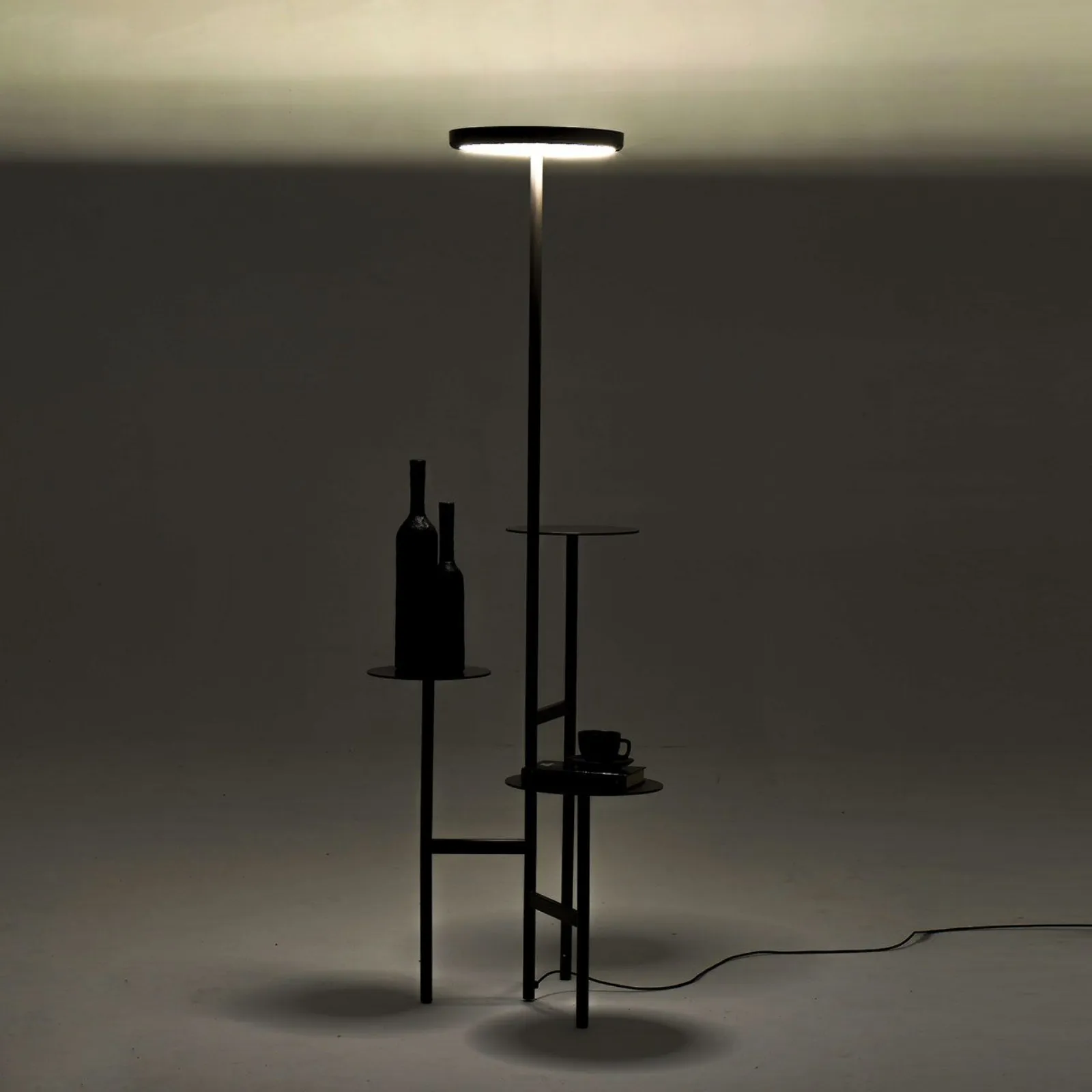 Versione piantana con doppia luce include 3 piani di appoggio di diametro cm 32 29, 36.
