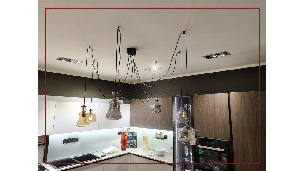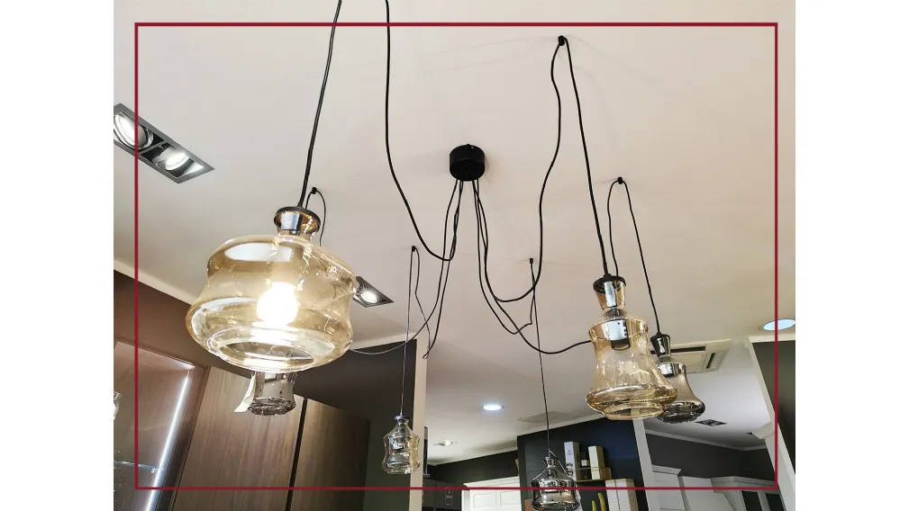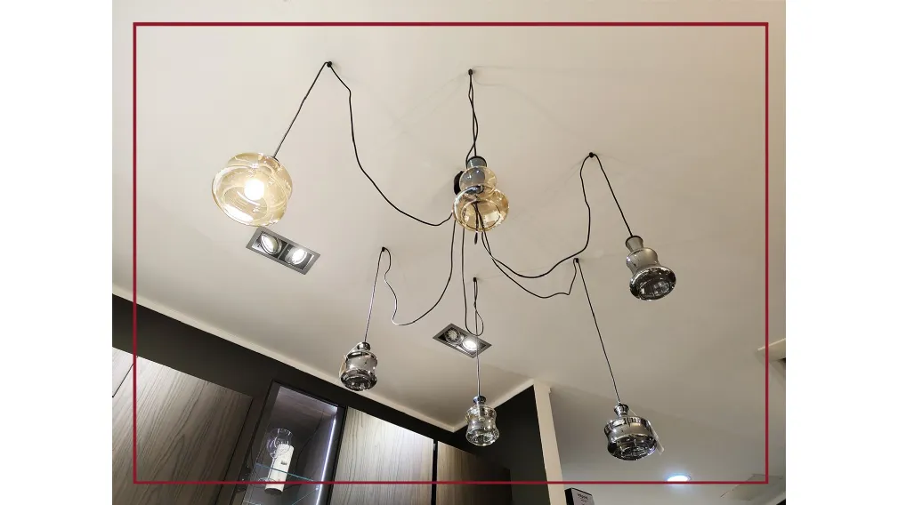 Le varianti in vetro ambra e fumé aggiungono profondità e calore all’ambiente, valorizzando lo spazio con una luce morbida e avvolgente.