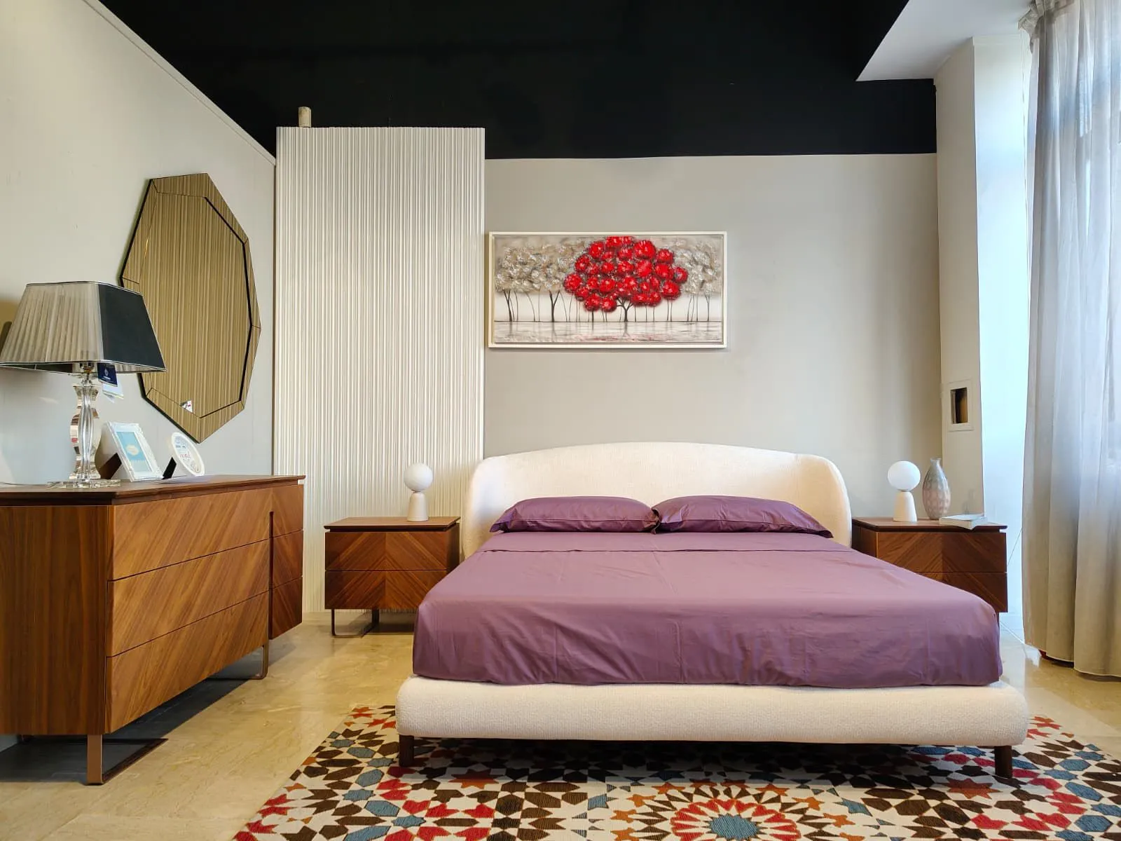 La struttura, elegante e contemporanea, è studiata per essere protagonista anche al centro della stanza, grazie a proporzioni equilibrate e a un’estetica che unisce linee morbide e materiali pregiati.