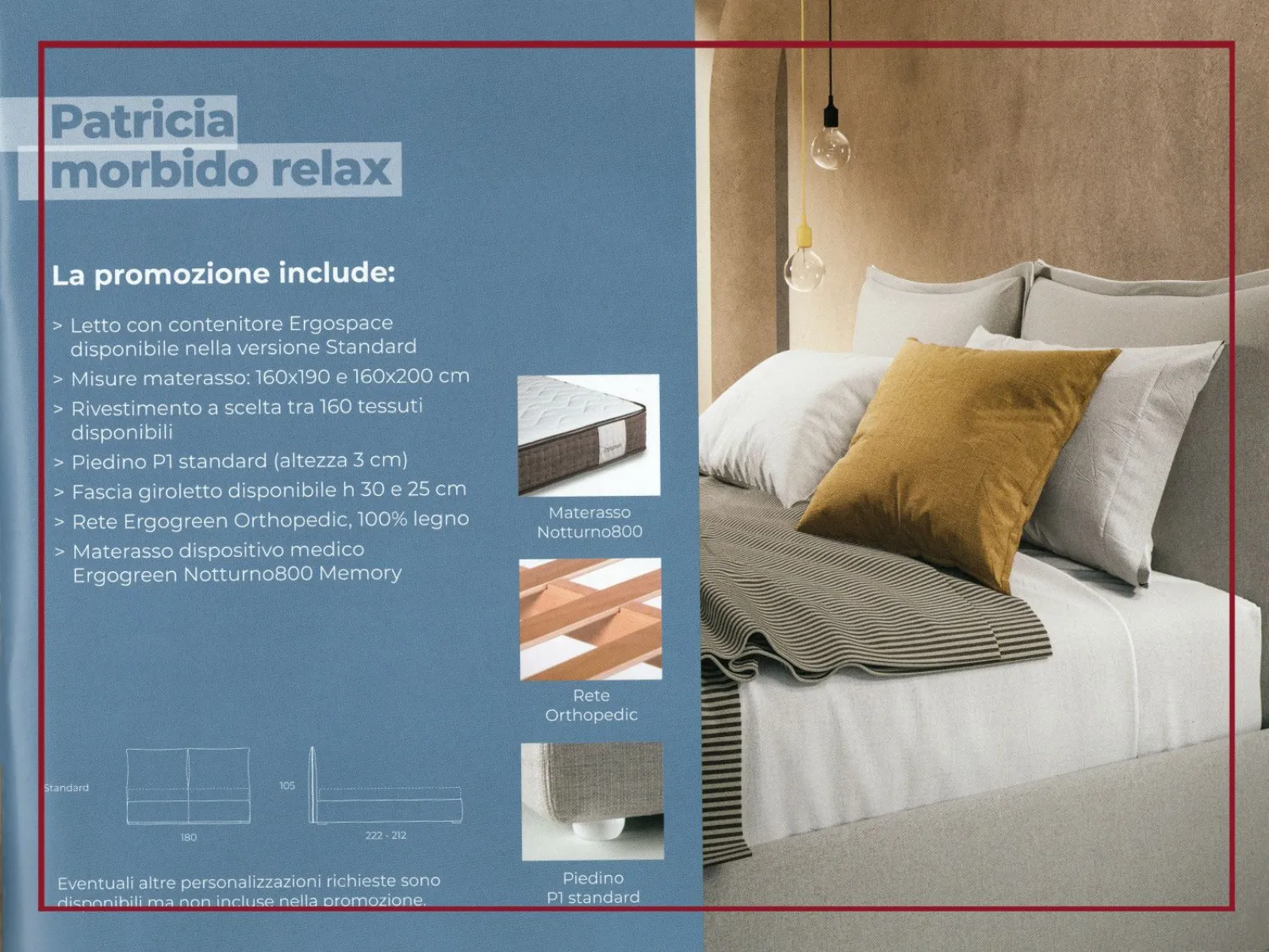 Patricia non è solo un letto, ma un vero e proprio elemento d’arredo che unisce estetica e benessere, pensato per chi desidera un riposo rigenerante senza rinunciare al gusto.