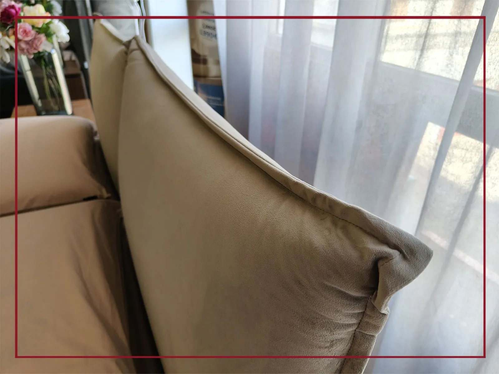 La sua forma accogliente e la testiera imbottita, leggermente sagomata ai lati, conferiscono alla camera da letto un’atmosfera sofisticata e contemporanea.