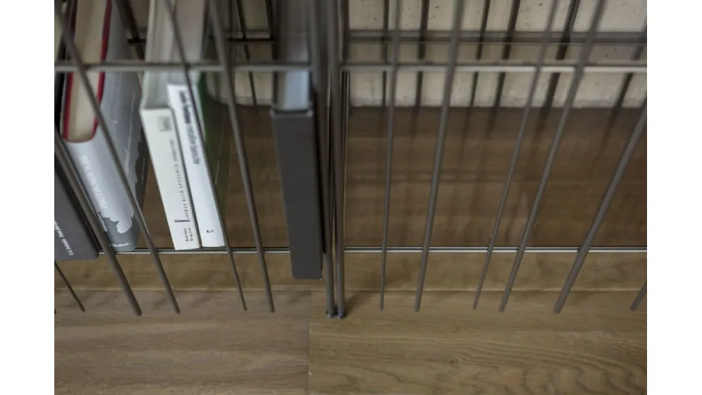 Libreria in metallo disponibile in 4 finiture: brunito, titanio, oro e bianco RAL 1013.