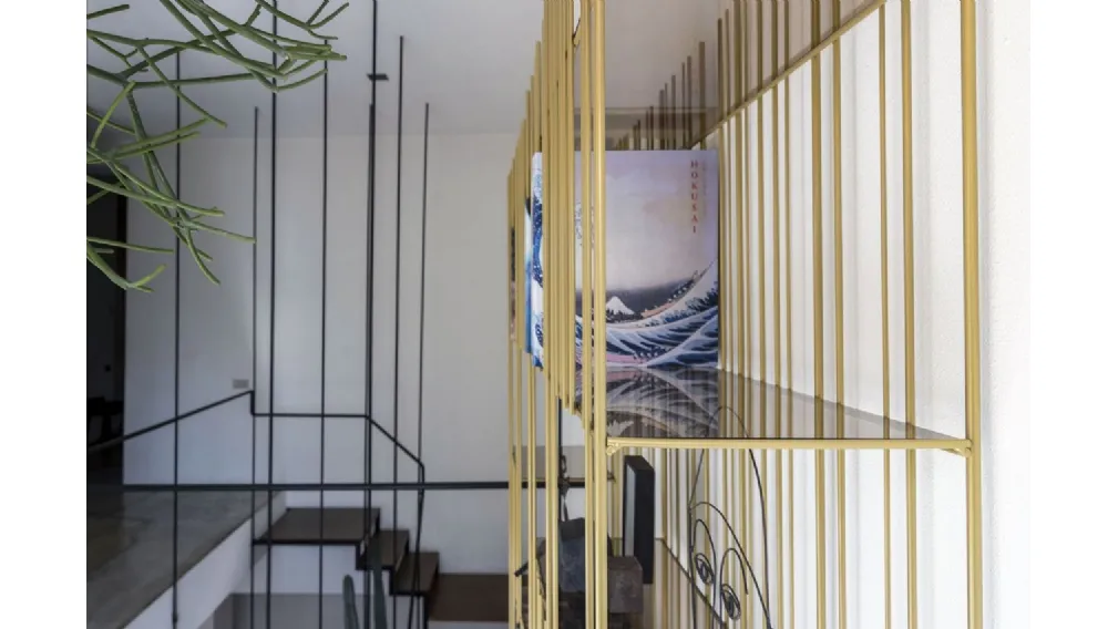 Libreria in metallo disponibile in 4 finiture: brunito, titanio, oro e bianco RAL 1013.