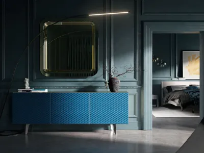 Il mobile contenitore di design, dotato di 2 o 3 ante, è realizzato con i materiali più pregiati, a partire dal soffice rivestimento frontale.