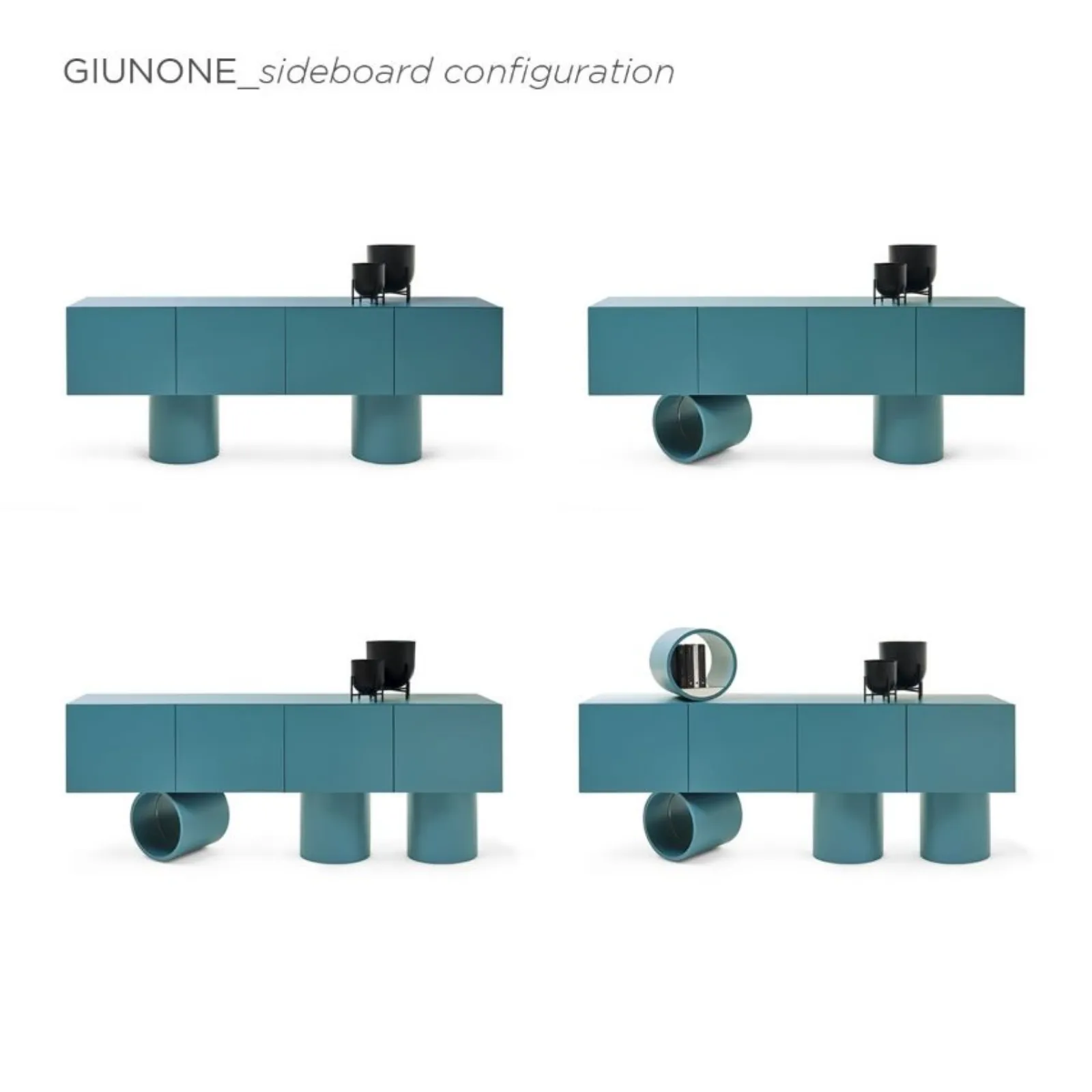 Giunone è una madia con struttura in Mdf laccata in tutti i colori come da campionario oppure placcata in legno di larice termo-trattato.
