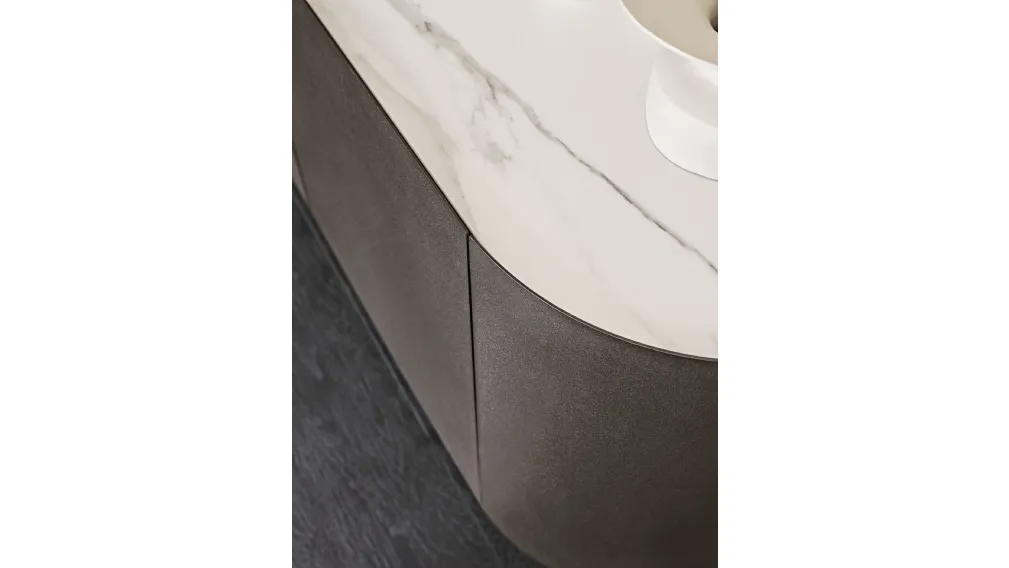 Giorgio Cattelan ha scelto una pregiata finitura in ceramica Marmi, per impreziosire il top del modello Savoy, la madia di design nata dalla sua penna.