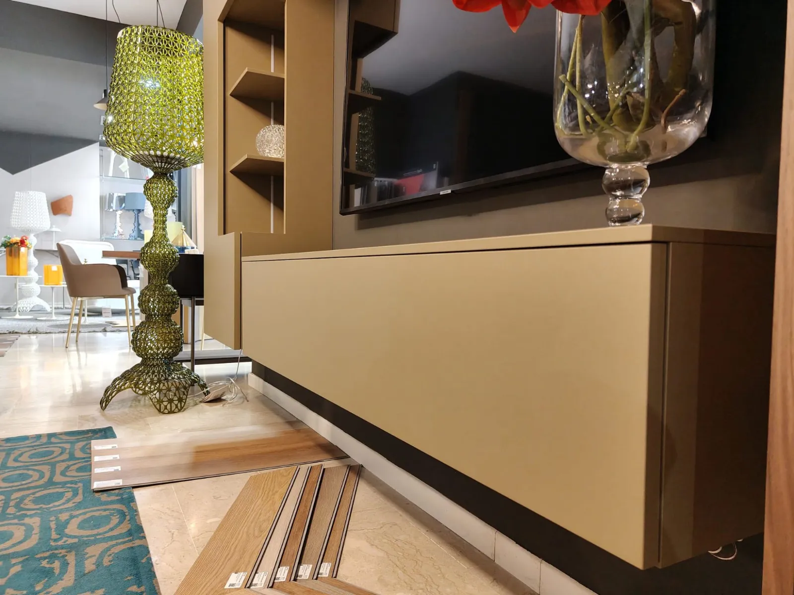 La parete attrezzata Horizon di Mobilgam si presenta come un equilibrio raffinato tra estetica contemporanea e funzionalità. La base sospesa, in una finitura chiara e materica, attraversa la parete con leggerezza, creando un piano d’appoggio essenziale che lascia respirare l’ambiente.